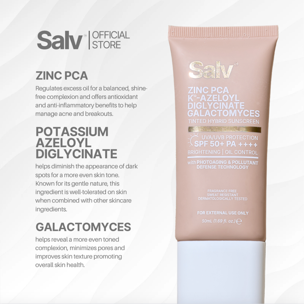 Salv Zinc PCA + K19 - Azeloyl Diglycinate + Galactomyces 3 in 1 Tinted Hybrid Sunscreen SPF 50+ PA++