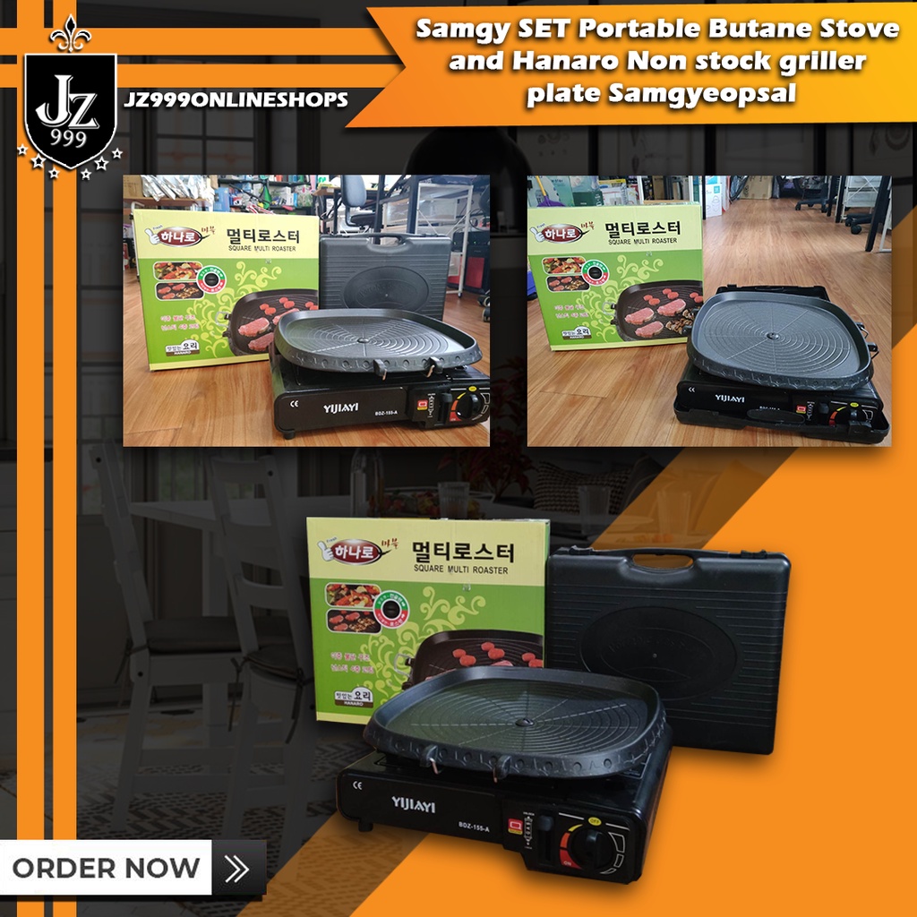 Samgy SET Portable Butane Stove and Hanaro Non stock griller plate Samgyeopsal