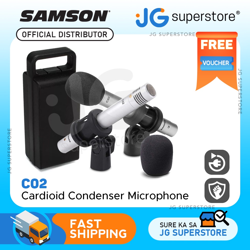 Samson C02 Pencil Cardioid Condenser Microphones with Gold Plated XLR Connectors (Single and Pair)