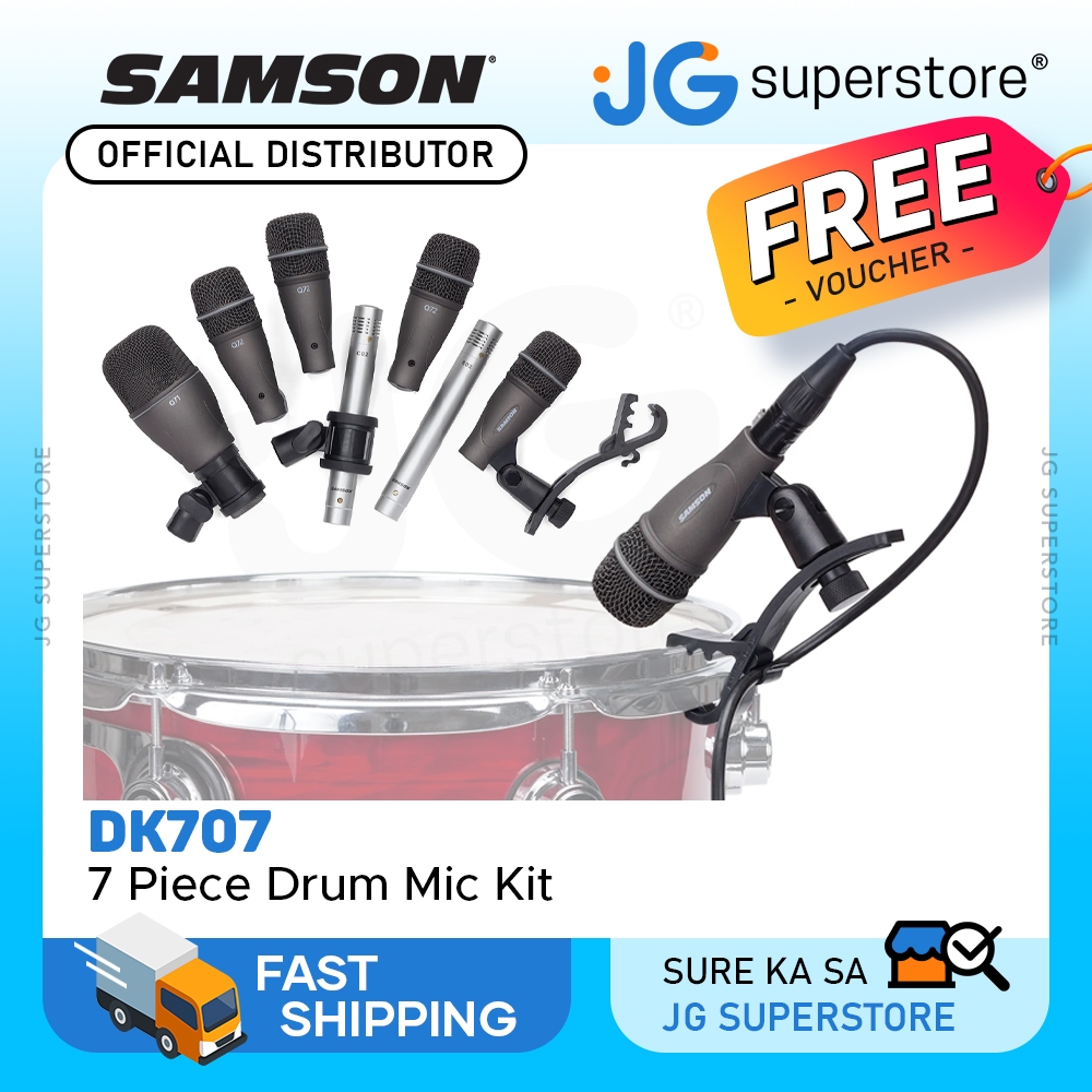 Samson DK70 7pcs / 5pcs Drum Mic Set Q71 Kick, 4X Q72 Dynamic & 2X C02 Pencil Condenser Microphones
