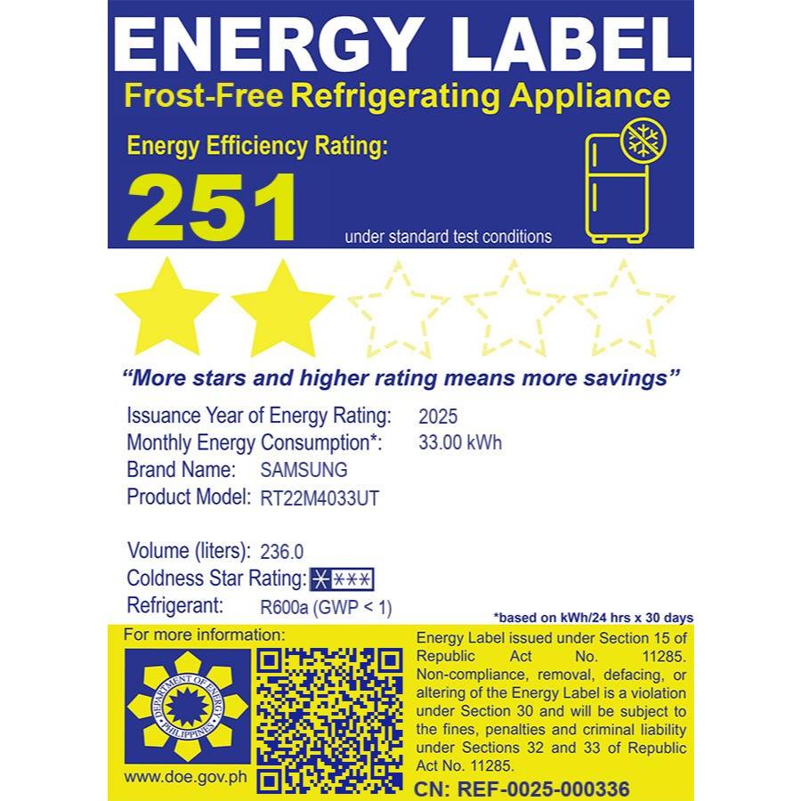Samsung 8.4 Cu.Ft. Top Mount No Frost Inverter Ref RT22M4033UT/TC