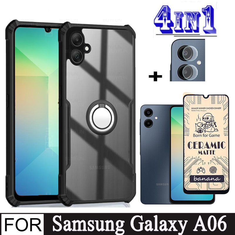 Samsung A06 4 in 1 Shockproof Phone Case for Samsung A05 A05s Camera Lens Ceramic Tempered Glass Screen Protector + Mobile phone holder
