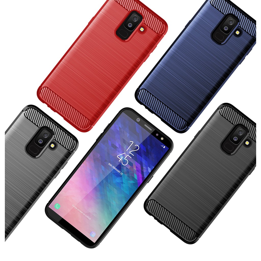 Samsung Gaalxy A6 Plus Casing Armor Carbon Fiber TPU Soft Silicone Back Cover Samsung A6 2018 Case