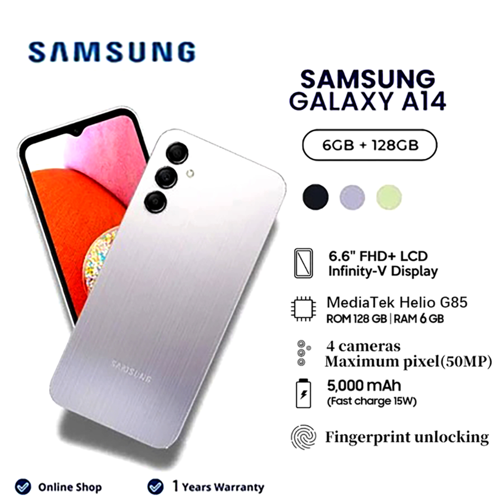 Samsung Galaxy A14 RAM 6GB ROM 128GB 6.6-inch screen size 13-megapixel camera One-year warranty