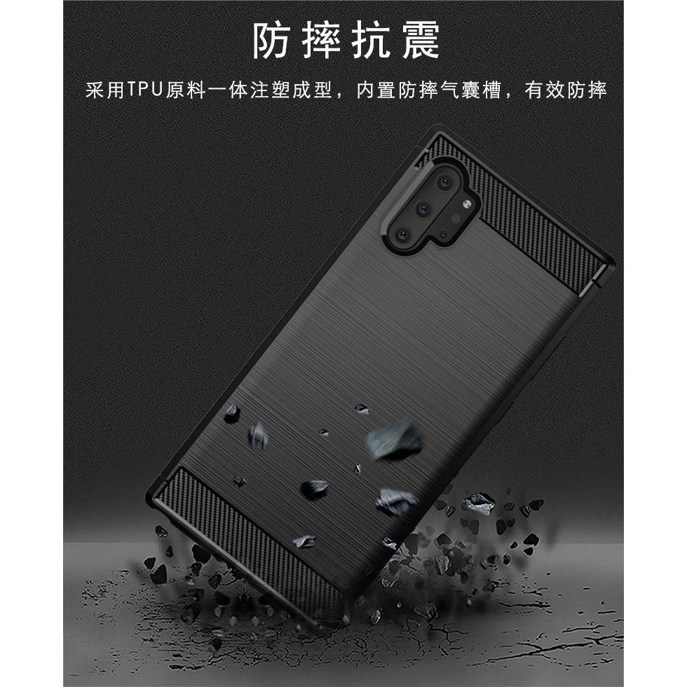Samsung Galaxy Note 10 Plus Casing Armor Carbon Fiber TPU Soft Silicone Back Cover Phone Case