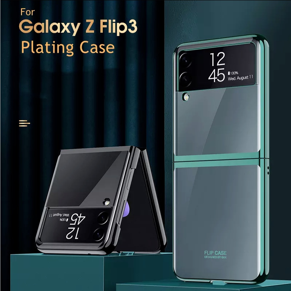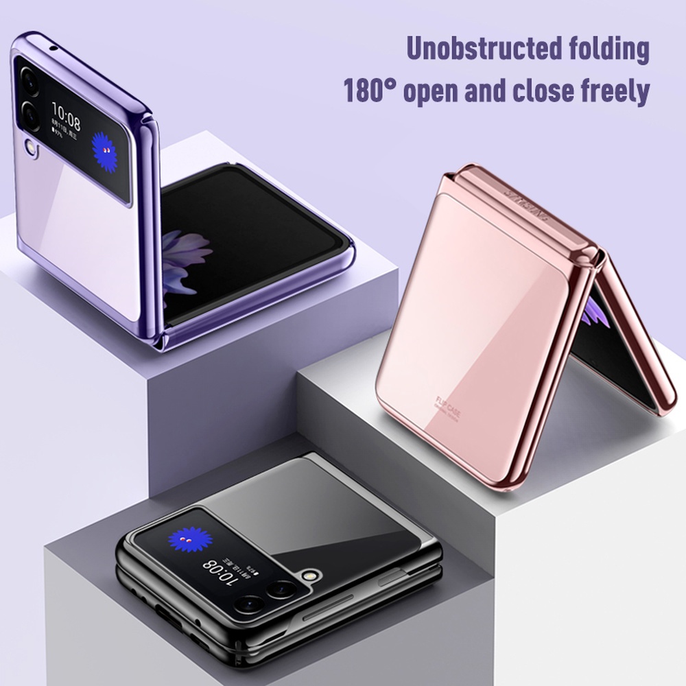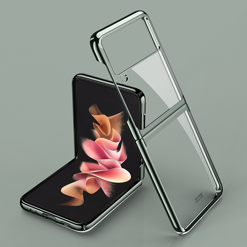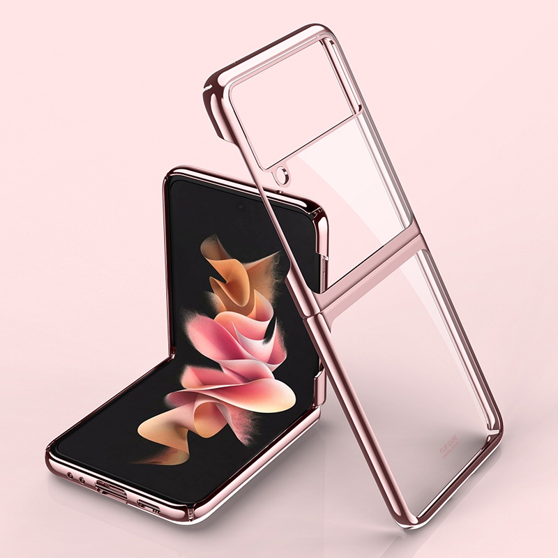 Samsung Galaxy Z Flip 3 5G Z Flip3 ZFlip3 5G Casing Luxury Fashion Plating Transparent Folding Phone Case Shockproof Slim Thin Hard Back Cover