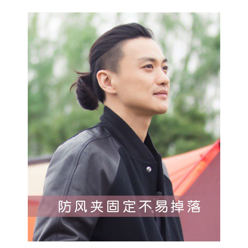 Samurai head wig men s back head ponytail handsome Korean version reissue film forehead invisible long hair real hair me