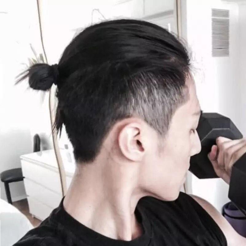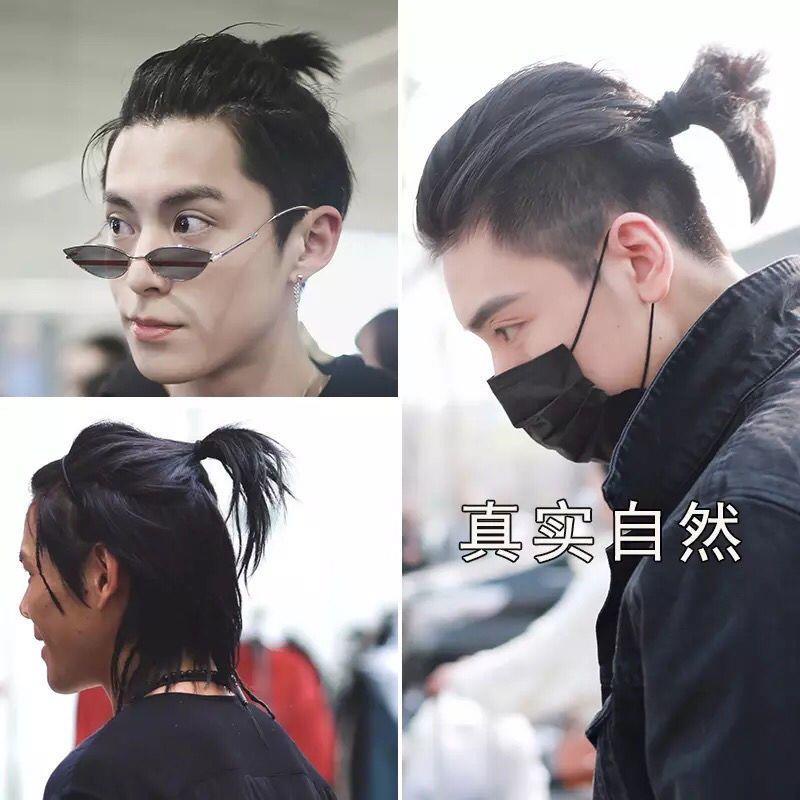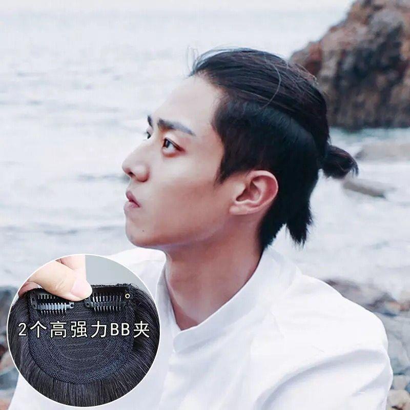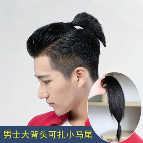 Samurai head wig men s back head ponytail handsome Korean version reissue film forehead invisible long hair real hair me