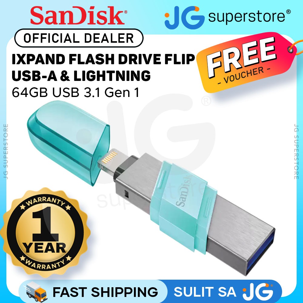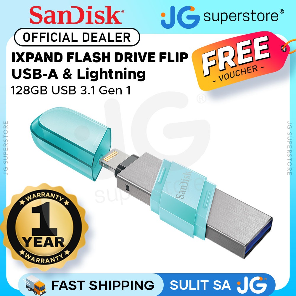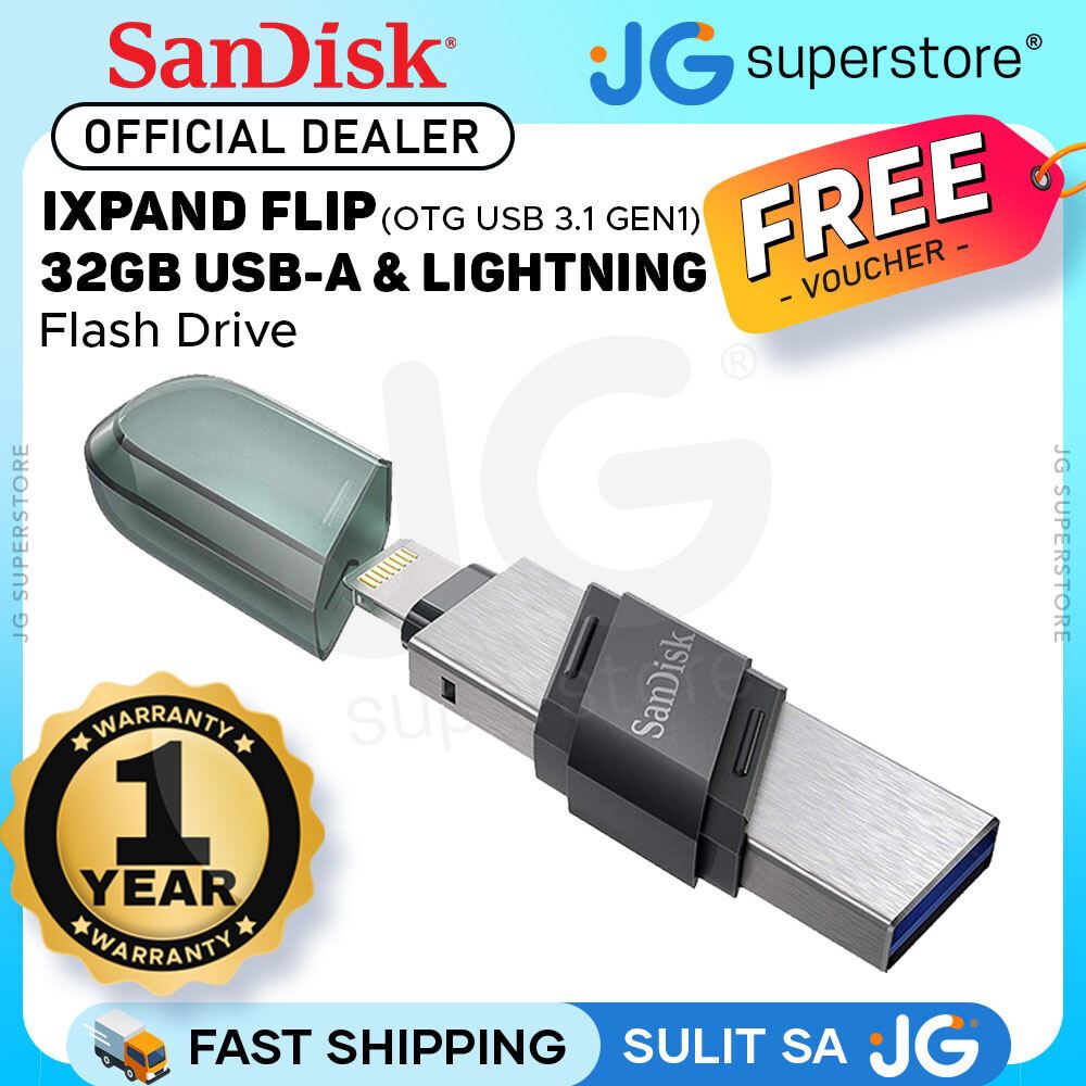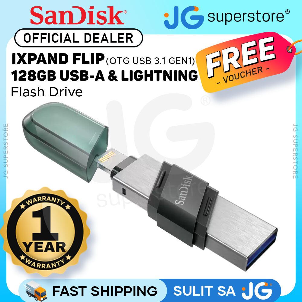 SanDisk iXpand USB 3.1 to Lightning Flash Drive Flip 2 in 1 Read Speed (32GB, 64GB, 128GB, 256GB)