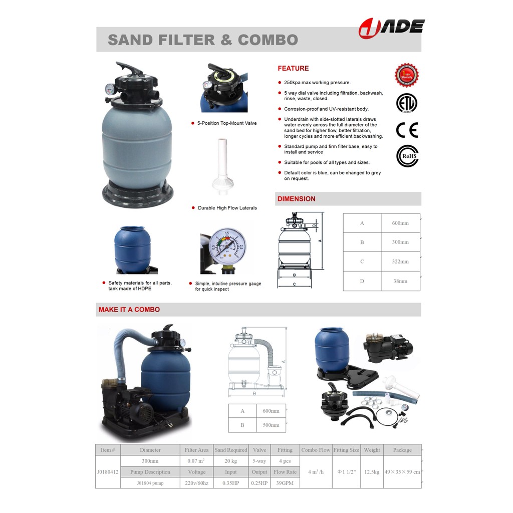 Sand Filter 300mm w/ Water Pump Combo For Swimming POOL Above Ground POOL Intex and Bestway