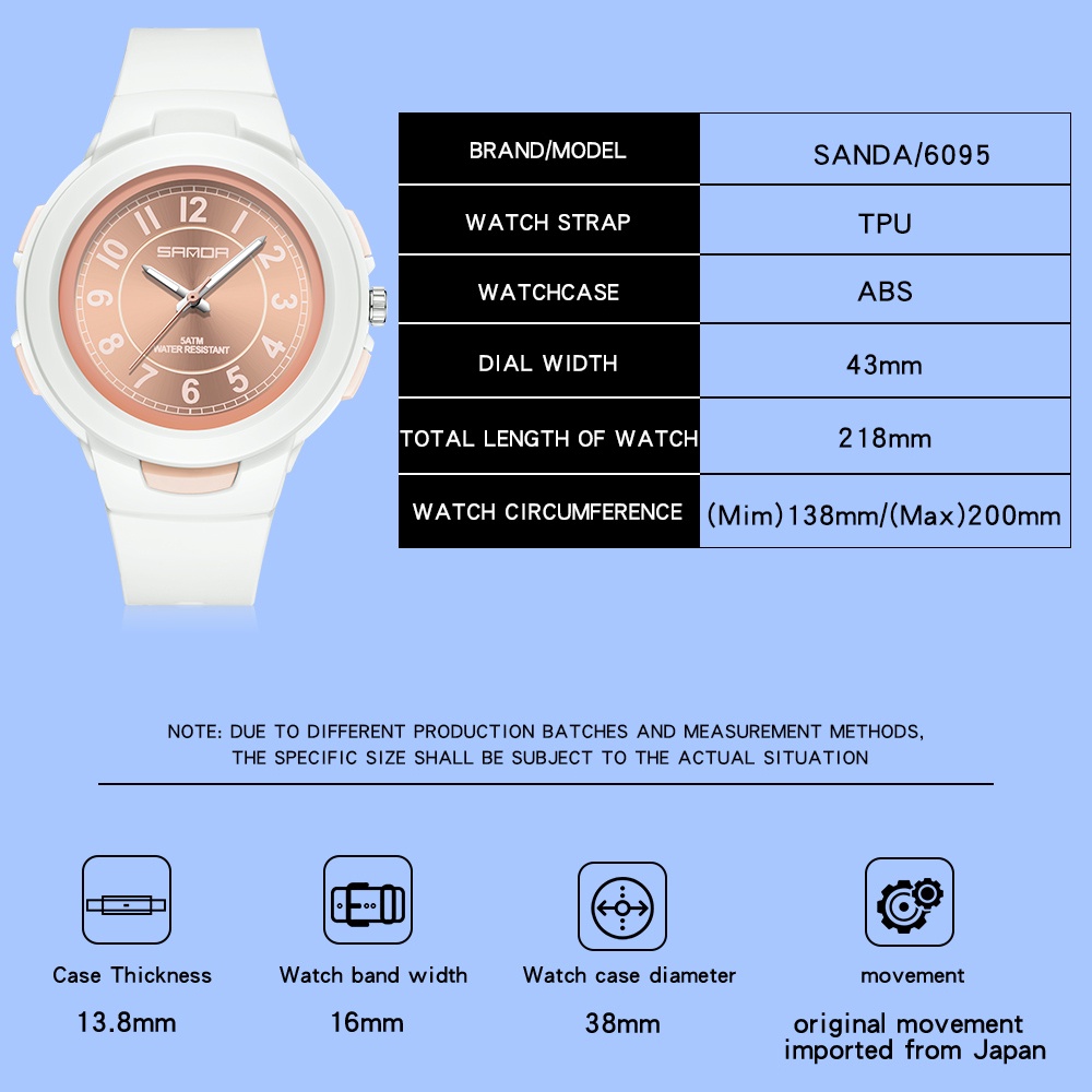 Sanda 2022 Popular Girls Boys Universal Watch Leisure Sports Sports Watch Cool Waterproof Solid Color Watch 6095-10