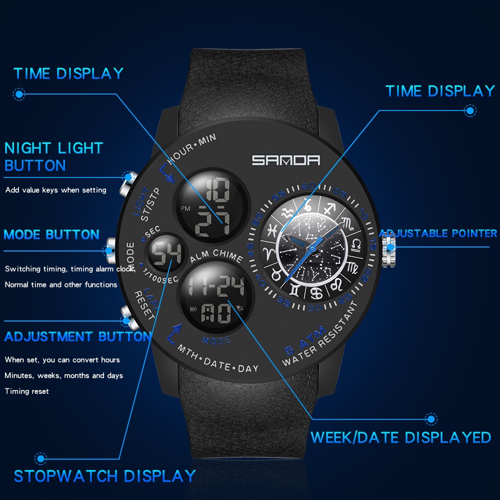 Sanda Casual Sports Sports Watch Cool Waterproof Constellation Watch 6036-8