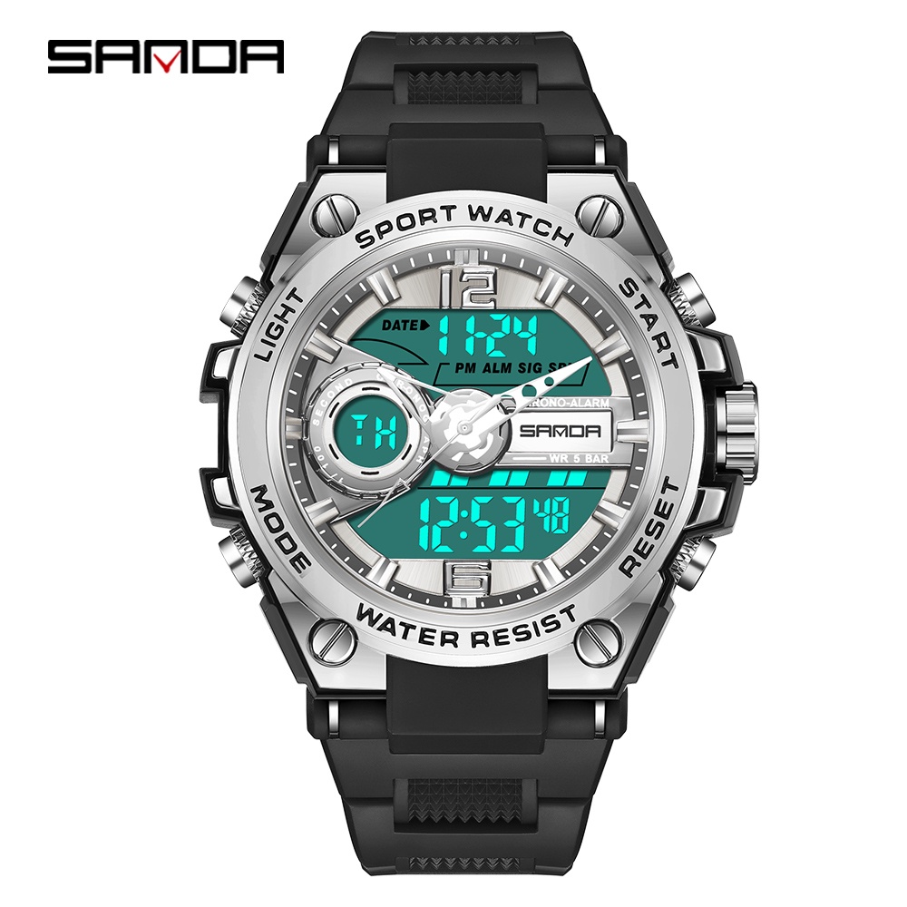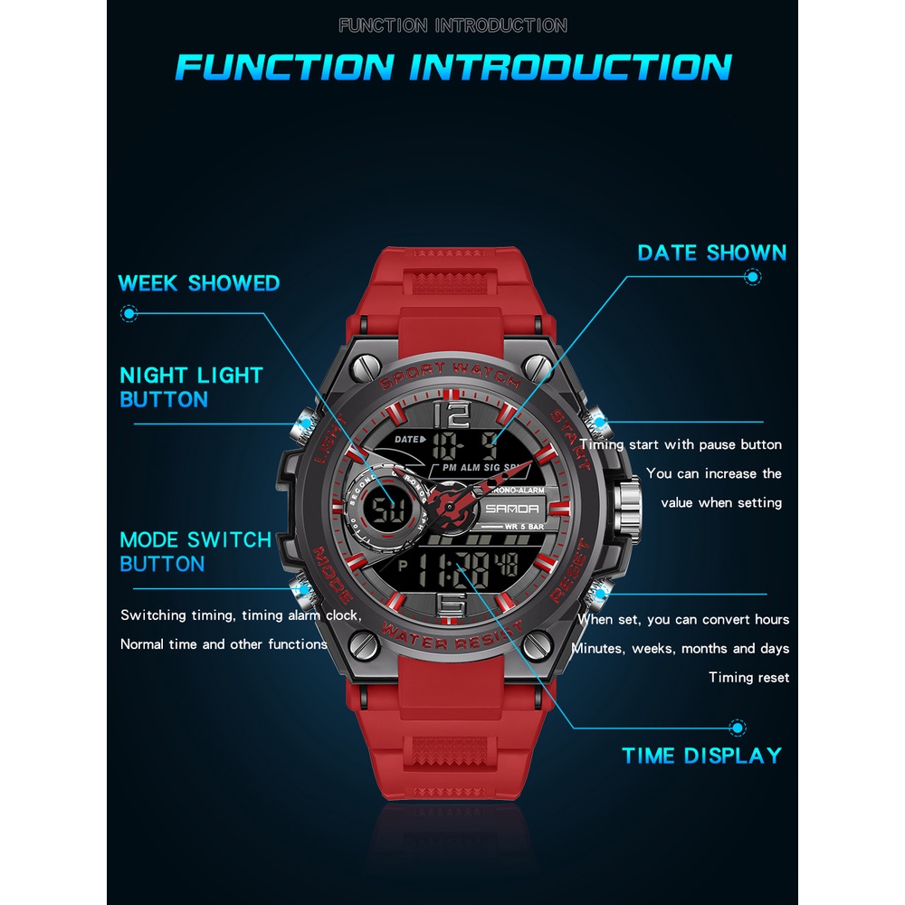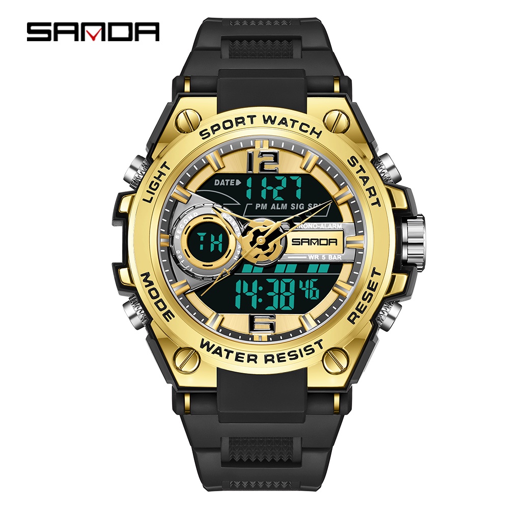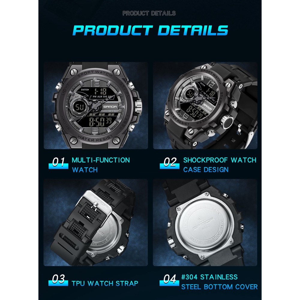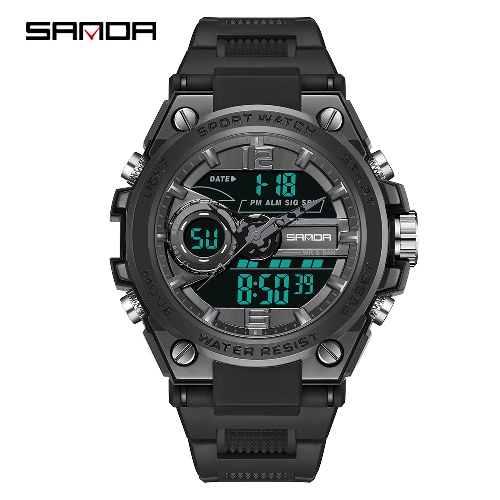 Sanda Digital Quartz Super Bright Fashion Luxury LED Watch Outdoor Analog Military Multifunction Alarm Clock Men's Watch Men's Sports Waterproof Watch 6092-2