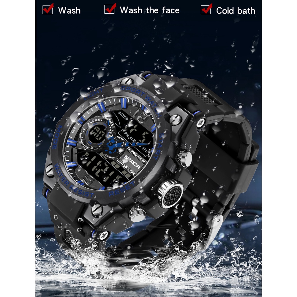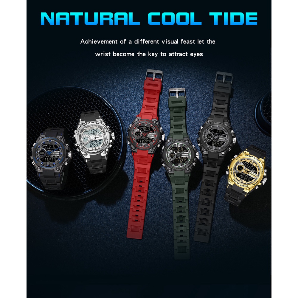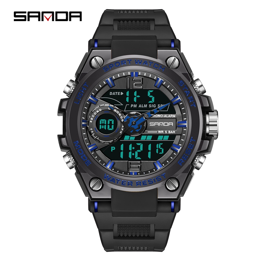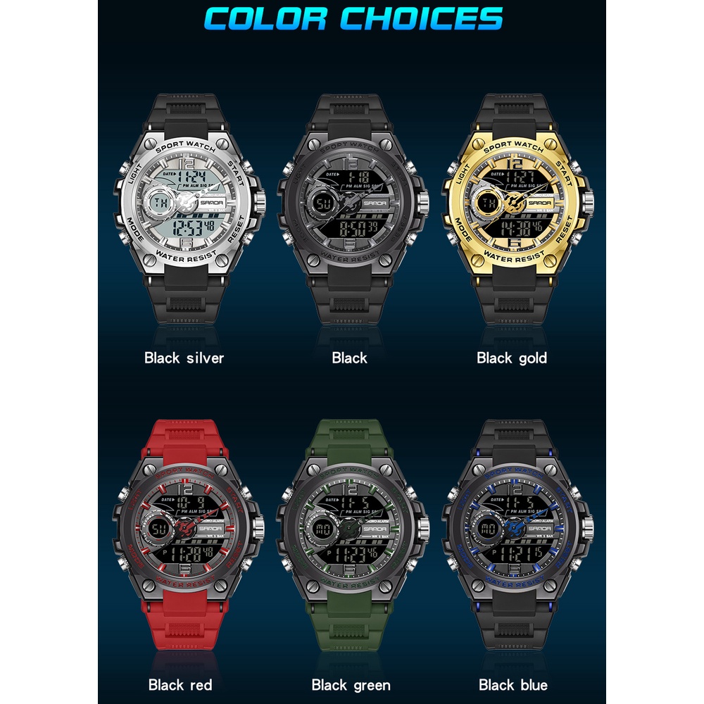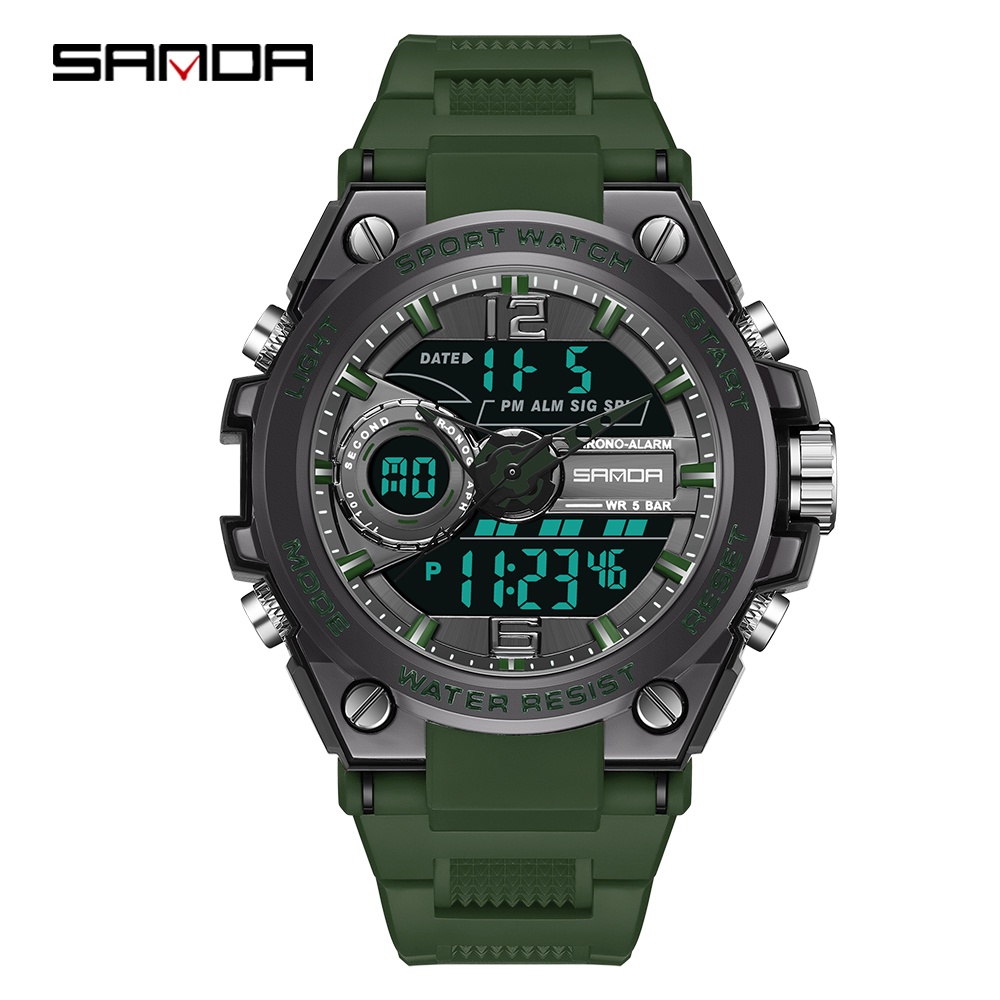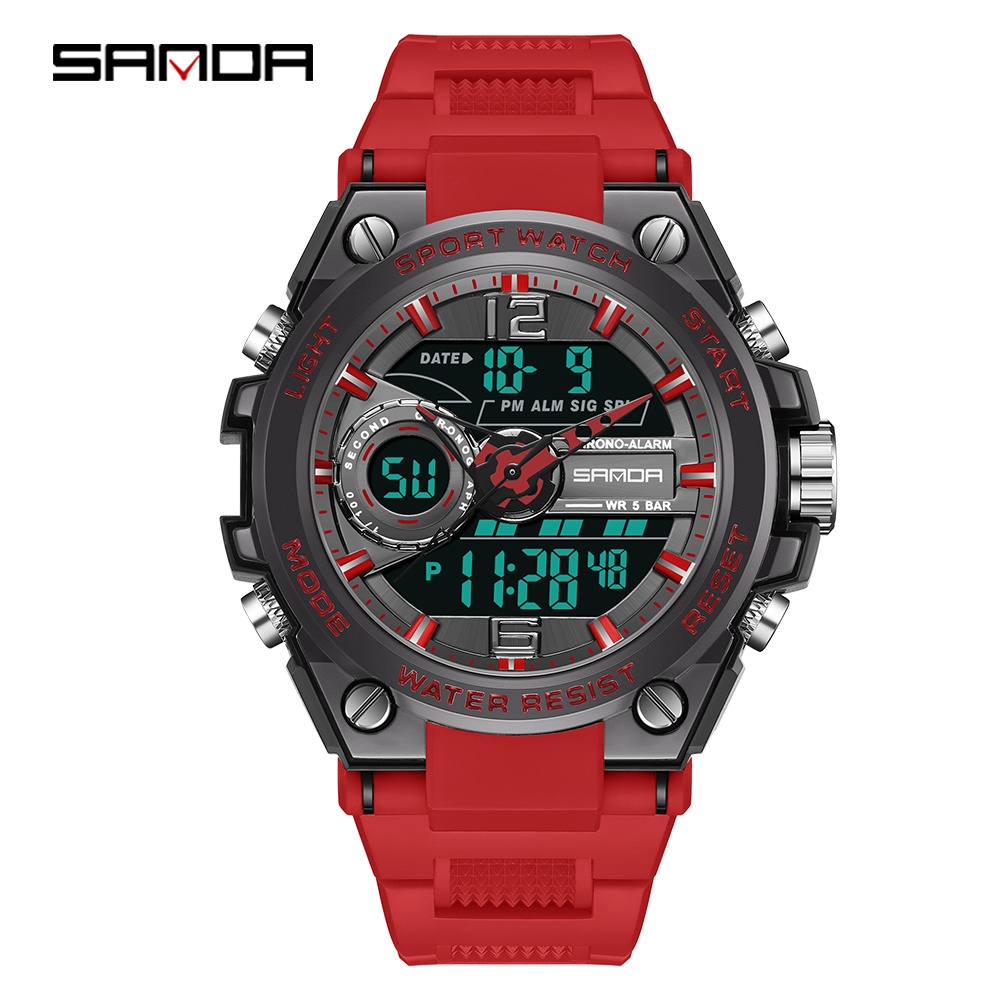 Sanda Digital Quartz Super Bright Fashion Luxury LED Watch Outdoor Analog Military Multifunction Alarm Clock Men's Watch Men's Sports Waterproof Watch 6092-2