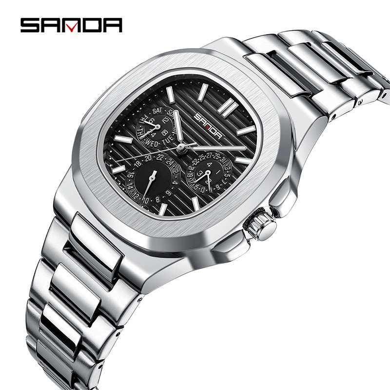 Sanda Men Direction Thread Business Leisure Fashion Single Calendar Night Glow Steel Band Quartz Watch SD7053-1