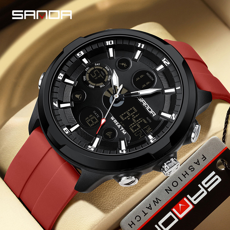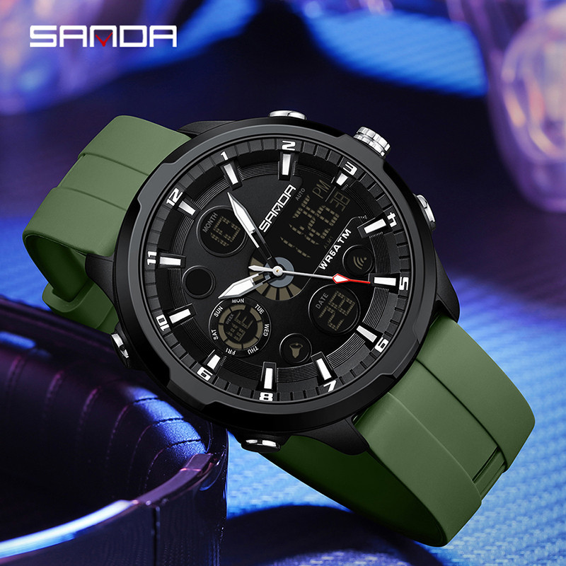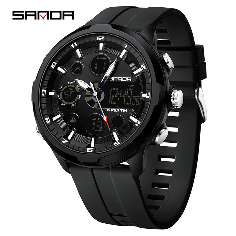 Sanda New Electronic Men's Watch Fashion and Leisure Watch Waterproof Night Glow Multi functional Watch SD9053-3