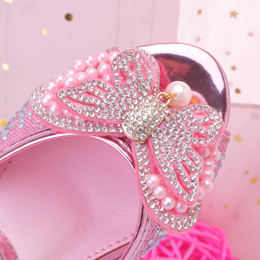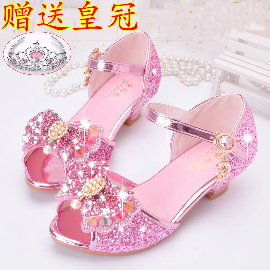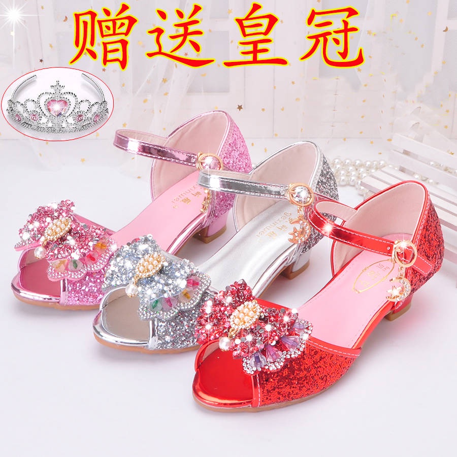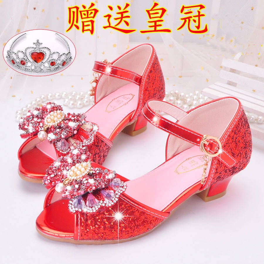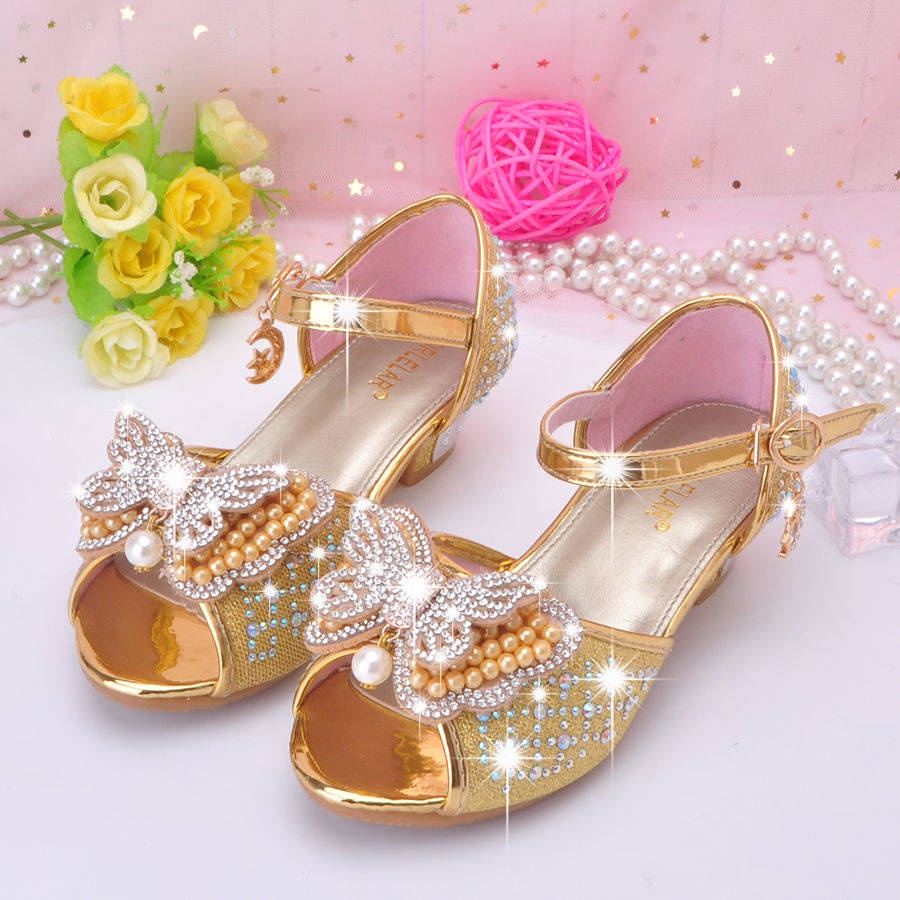 Sandals for kids girls heels princess Girls sandals new fashion, princess princess in summer children high heels high -heeled pearl girl net red crystal sandals