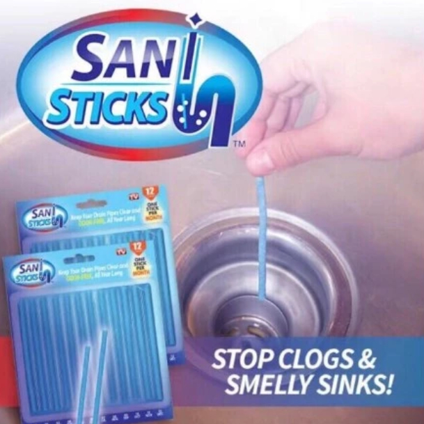 Sani Stick Drain Cleaner Deodorizer 12pcs Enzyme Stick for Sink Toilet Pipe Odor Removal