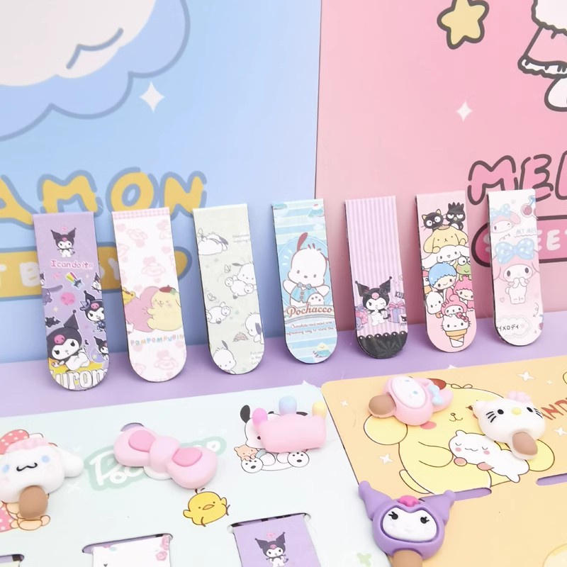 Sanrio Bookmark Kuromi Cute Pattern 6pcs Magnetic Bookmarks Page Clips Stationery