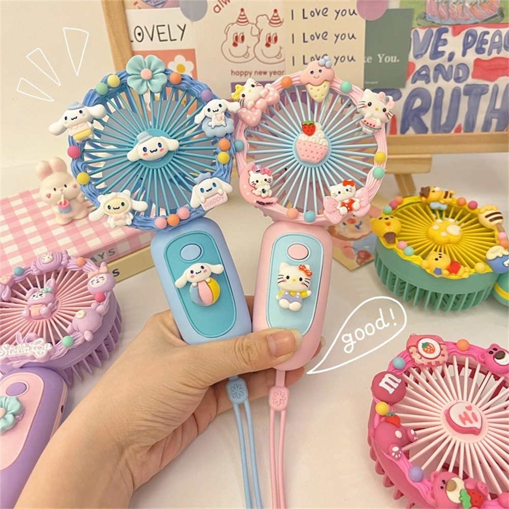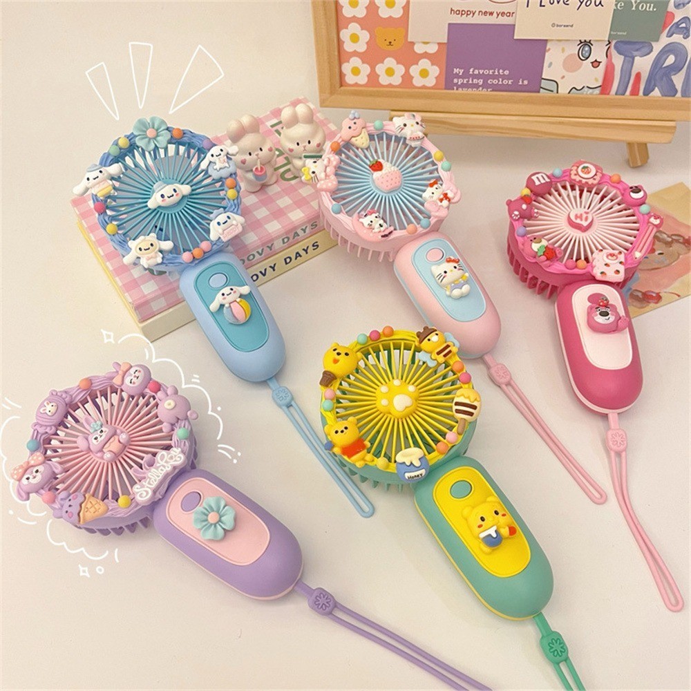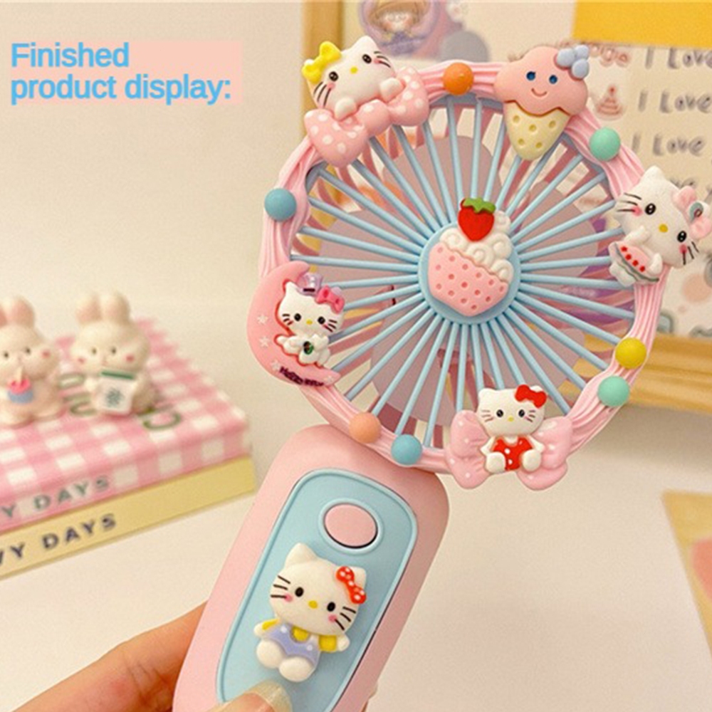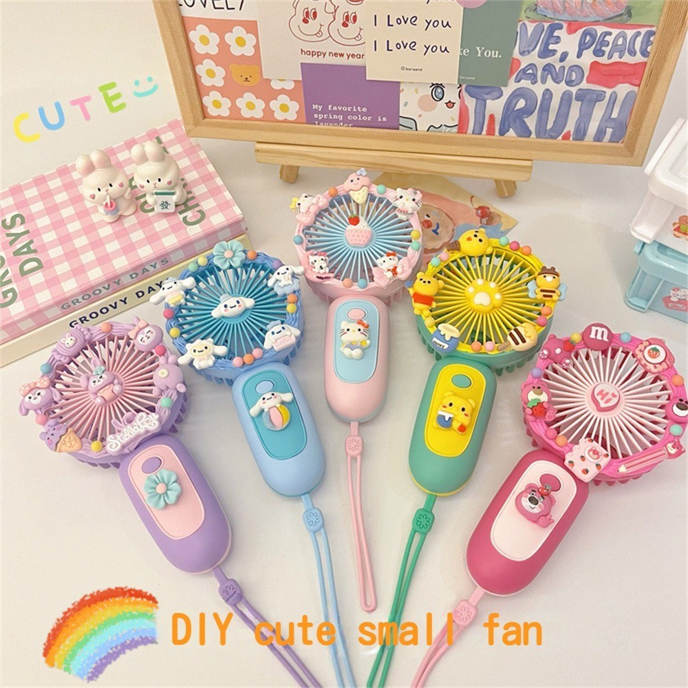 Sanrio Cartoon Small Fan Handheld DIY Handmade Manual Material Bag USB Charging Portable DIY Silent Fan Kids Gift