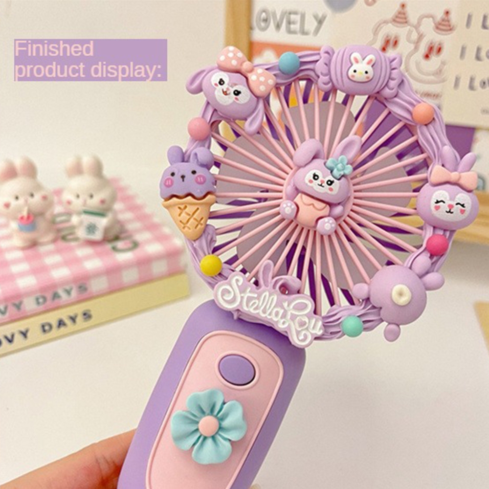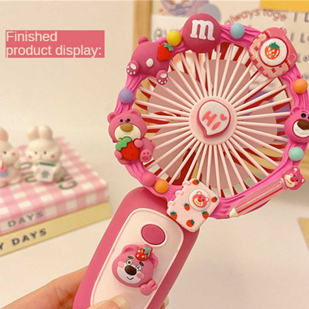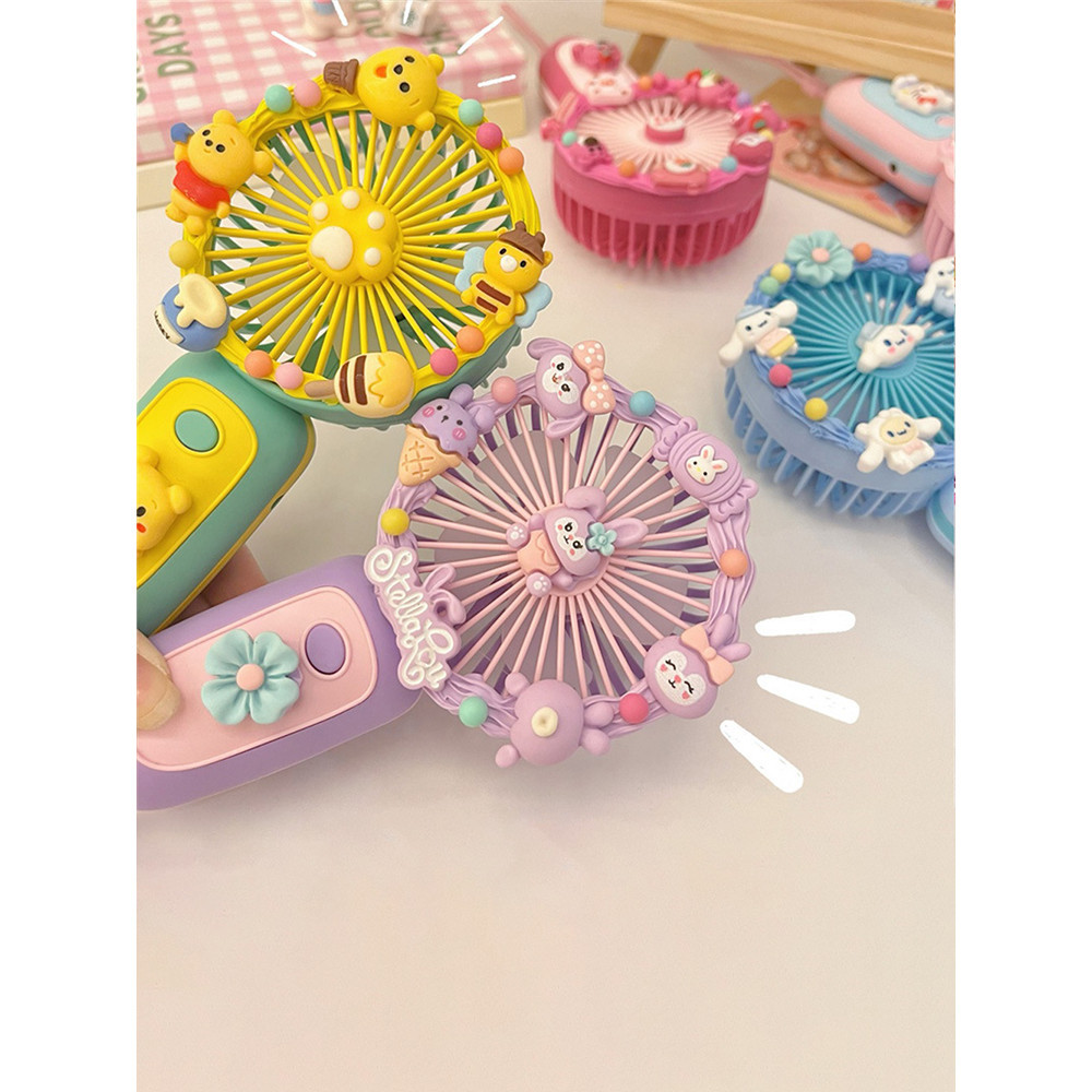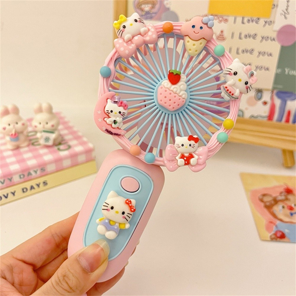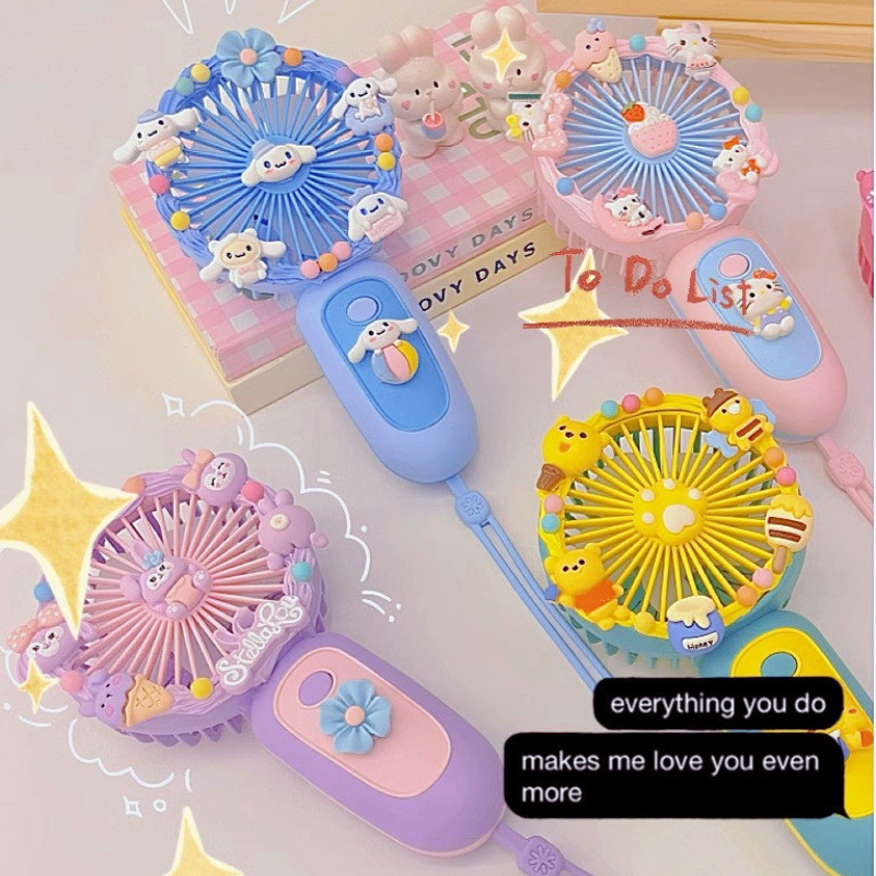 Sanrio Cartoon Small Fan Handheld DIY Handmade Manual Material Bag USB Charging Portable DIY Silent Fan Kids Gift