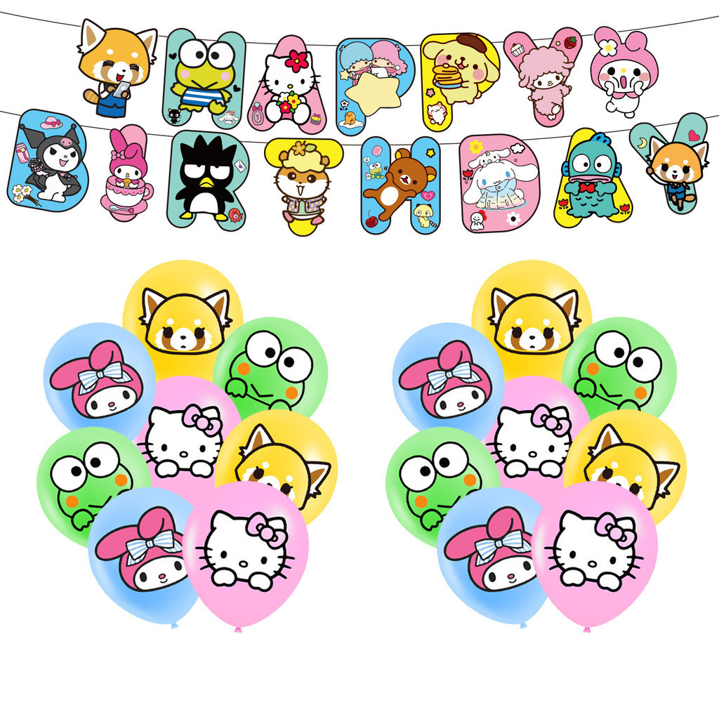 Sanrio Hello Kitty Kuromi Melody Pom Pom Purin Balloons banner cake toppers Birthday Party Decoraion Kids Children Baby Shower Party Supplies