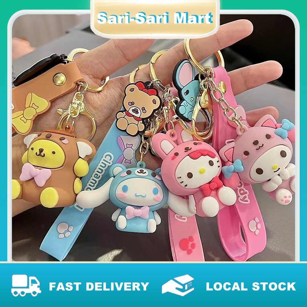 Sanrio Keychain Cute Kuromi Melody Cinnamoroll Hello Kitty Anime Doll Key Chain Schoolbag Pendant