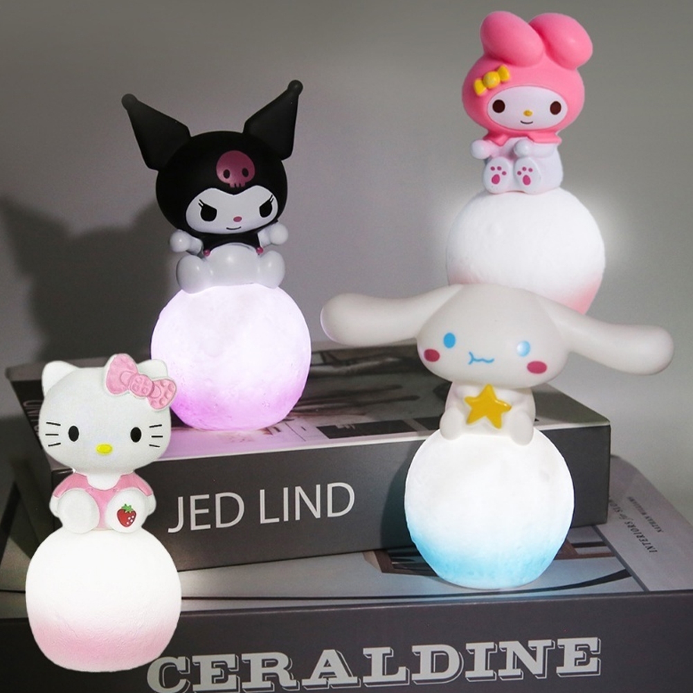 Sanrio Night Lights Kawaii 3D Sanrio Moon Night Light Cinnamoroll Kuromi Melody Figure Cartoon Lamp Cute Lamp Bedside