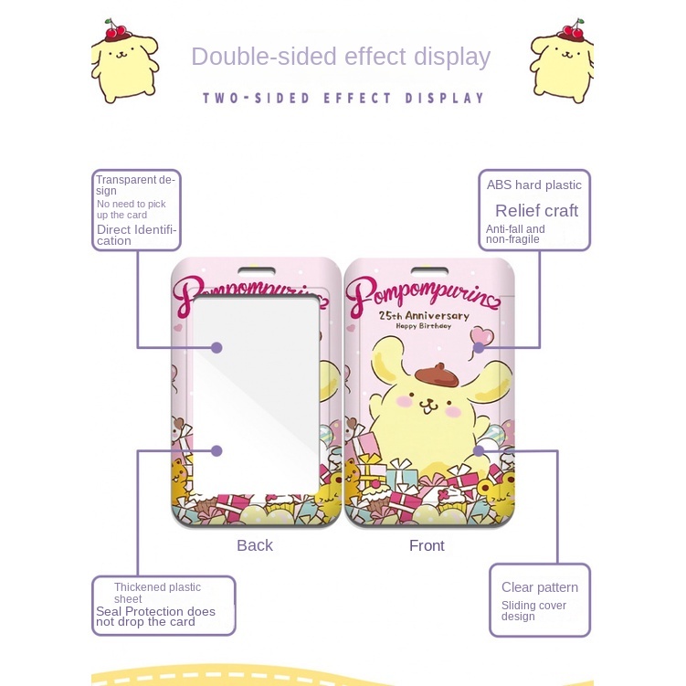 Sanrio Pom Pom Purin Embossed Card Holder Card Holder pompompurin ID Card Holder Protective Case Student Campus Card Bus Card Holder Exchange Gift