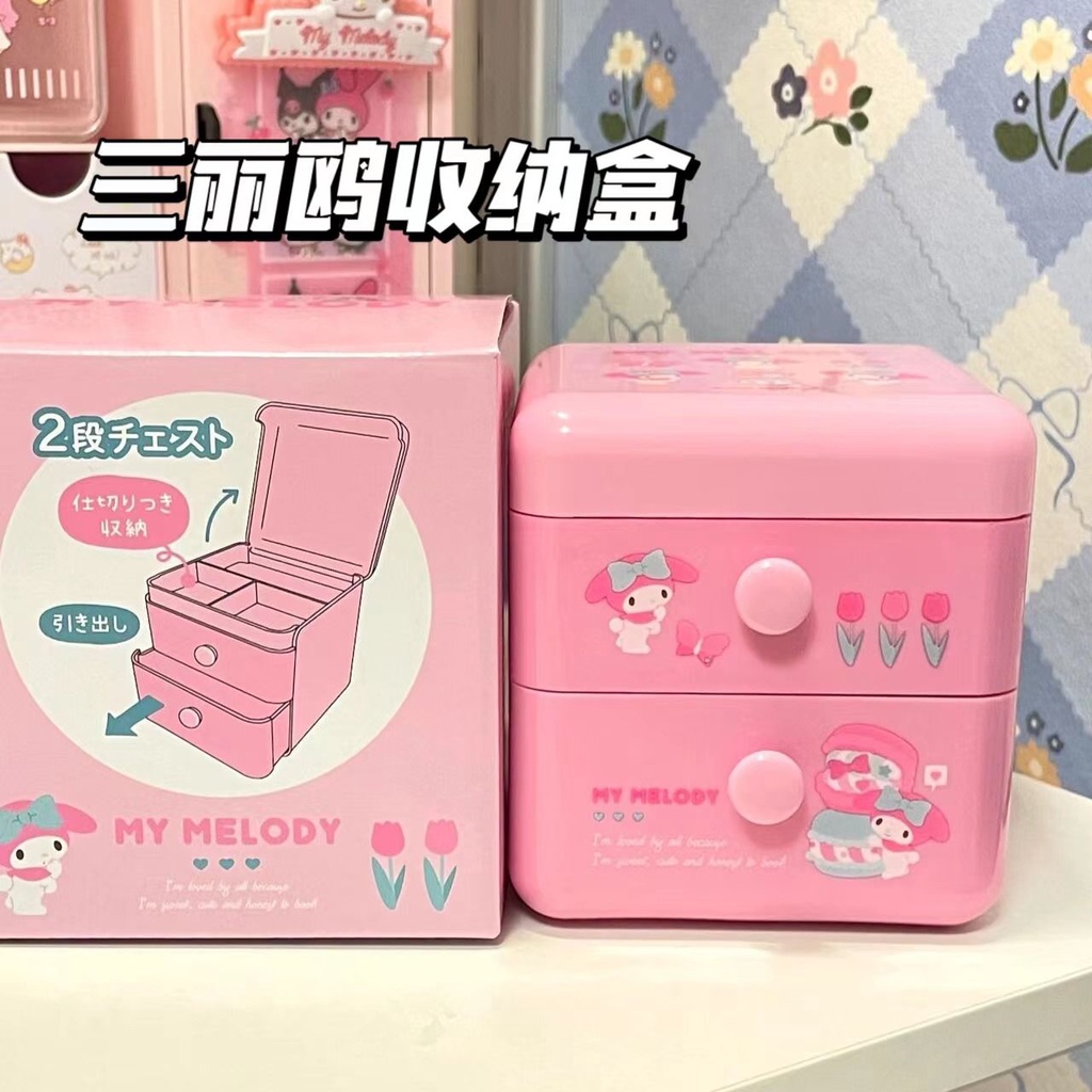 Sanrio Storage Box Melody Double-Layer Compartment Desktop Kuromi Drawer Xiaohongshu Same Style ins