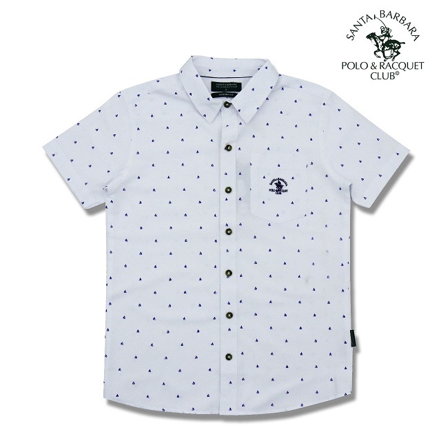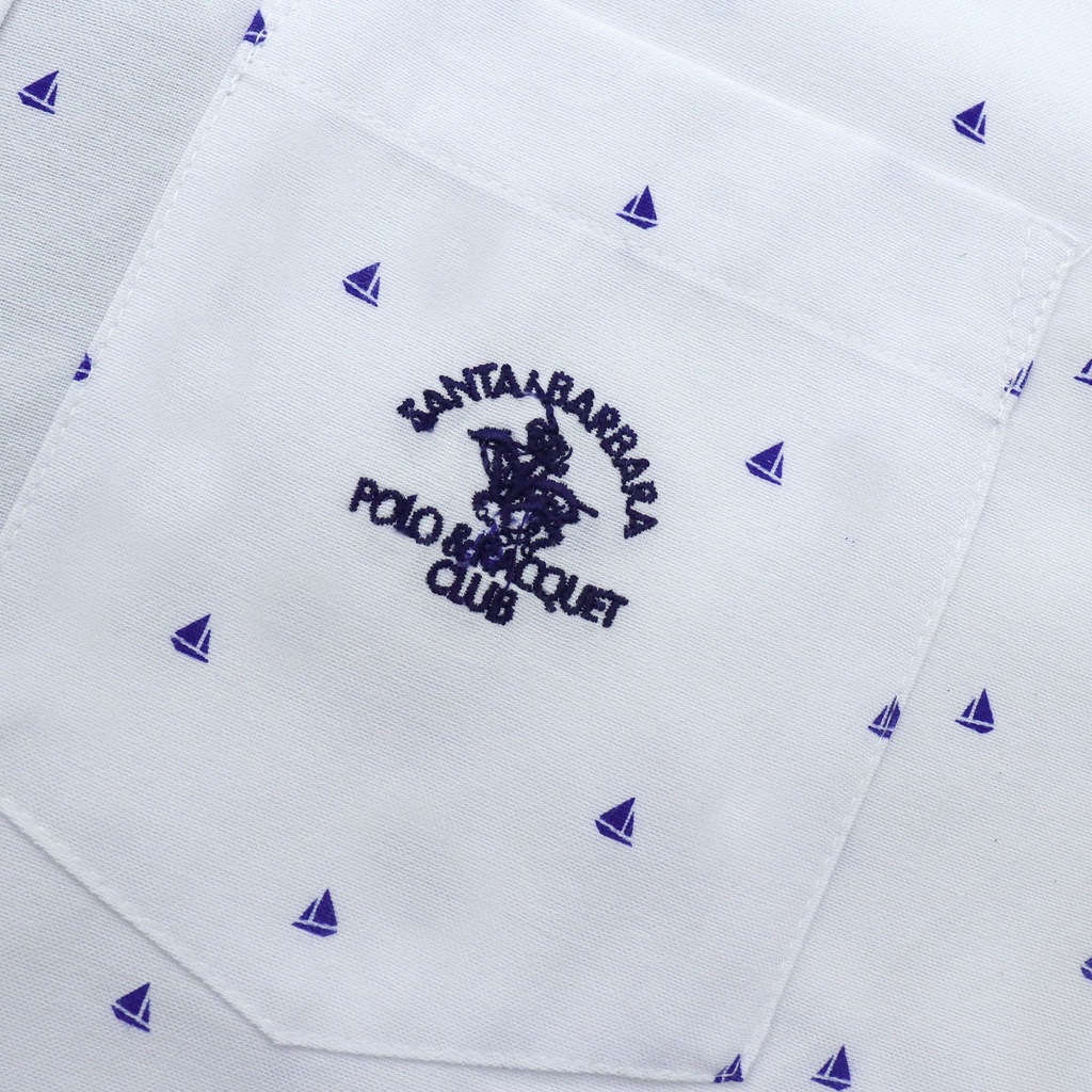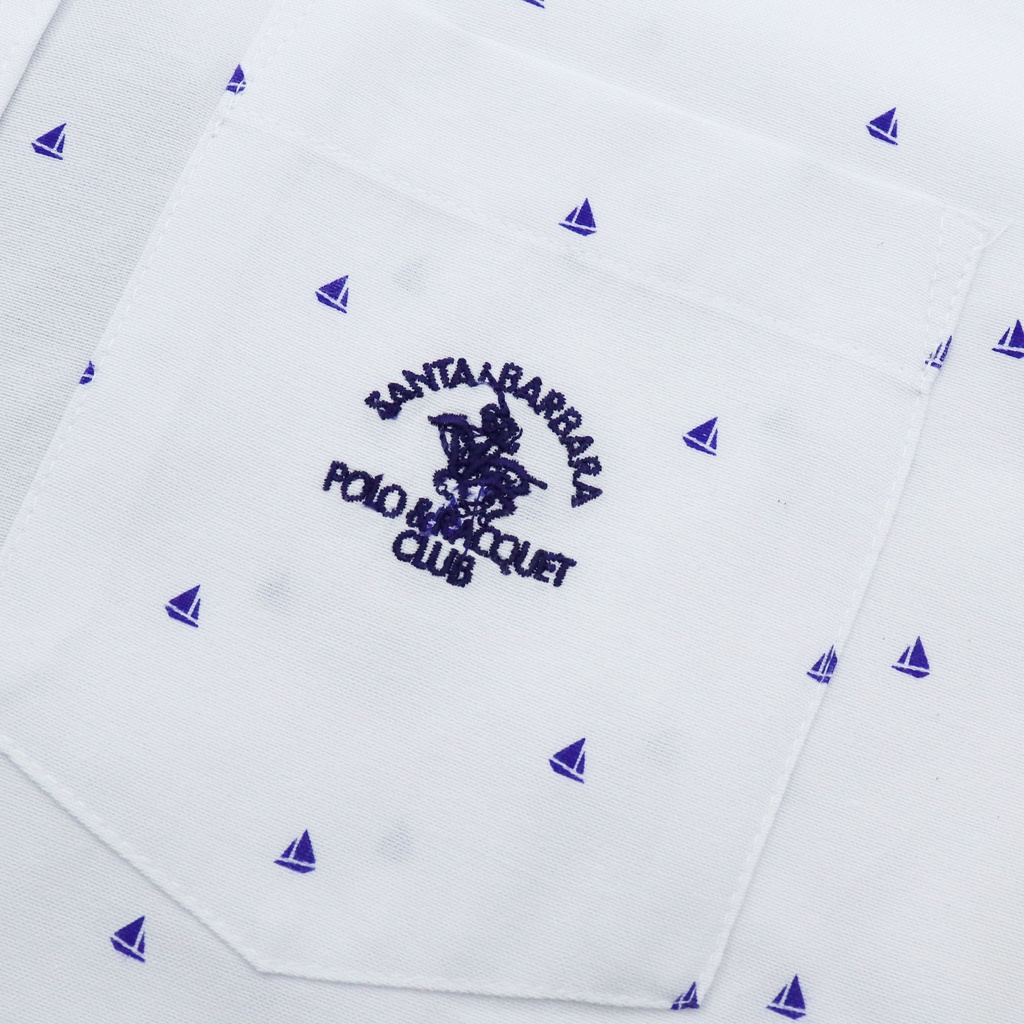 Santa Barbara Polo And Racquet Club Printed White Woven Polo For Men With Embroidered Logo