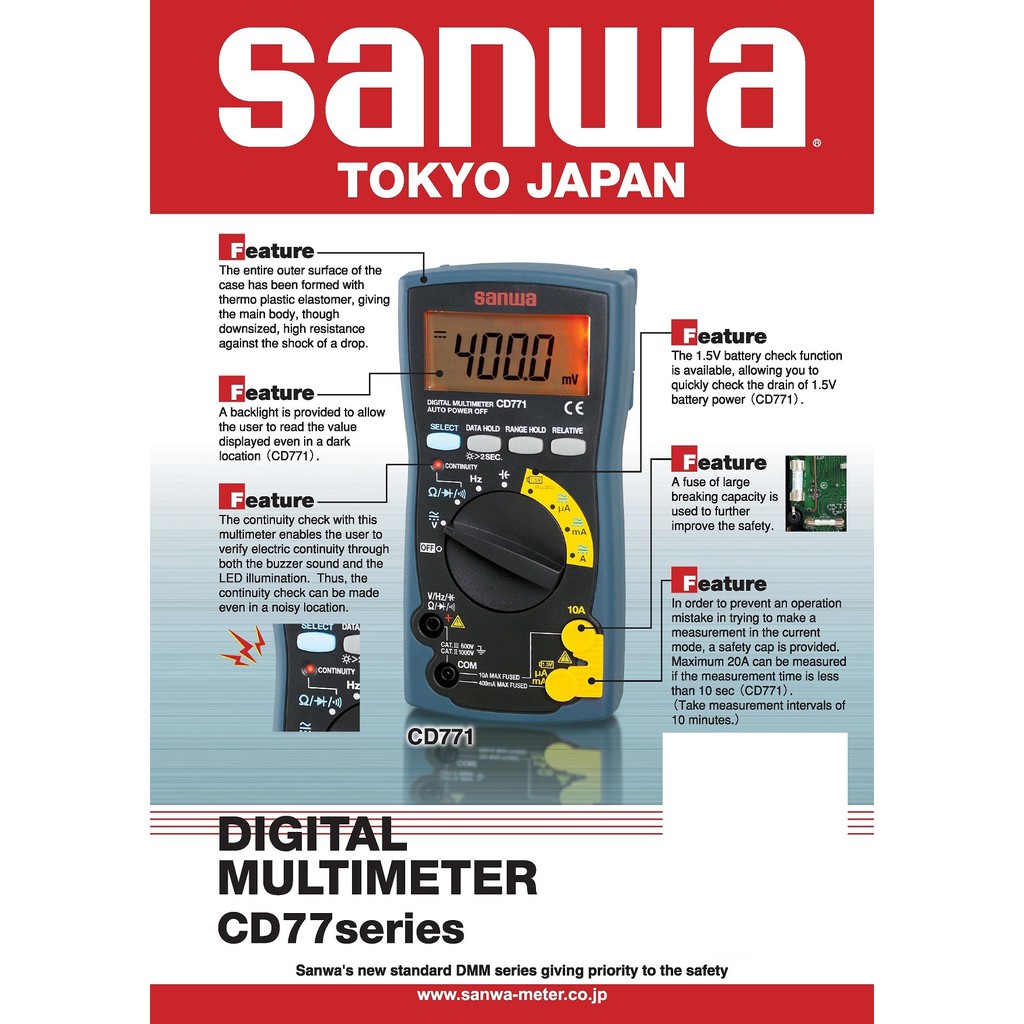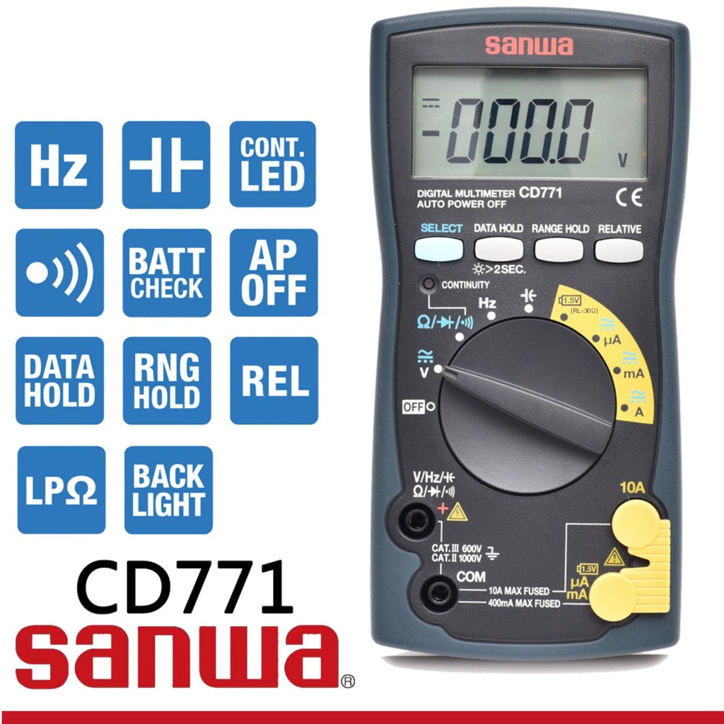Sanwa CD771 Digital Multimeter Backlight & Cont. buzzer with LED AC/DC Voltmeter True RMS Digital Mu
