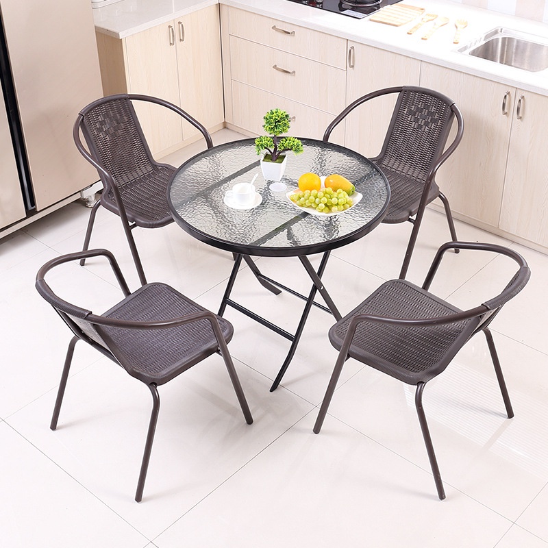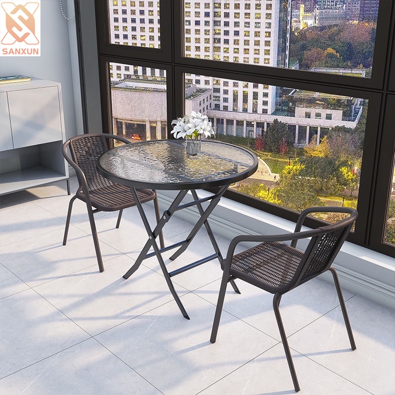Sanxun Outdoor Folding Table Glass Coffee Round Square Garden Dining Small Glass Round Table