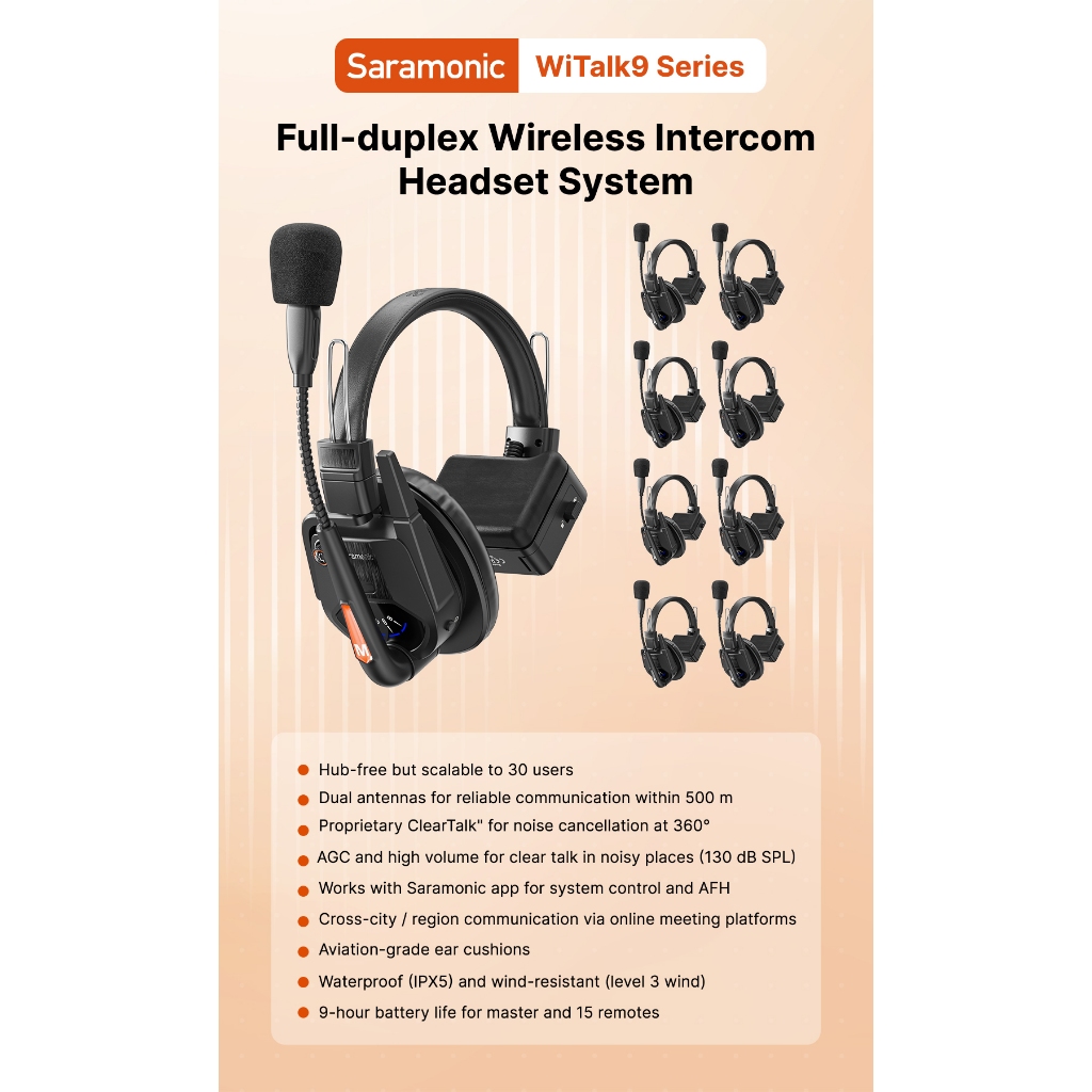 Saramonic WiTalk9 9-Person Full-duplex Wireless Intercom Headset System for Filmmaking live performances TV production sports events