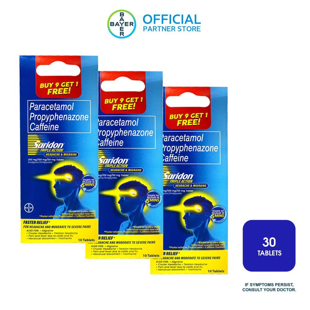 SARIDON® Paracetamol/Propyphenazone/Caffeine Tablet for Fast Headache Relief Grab n Go Pack 9+1 x3
