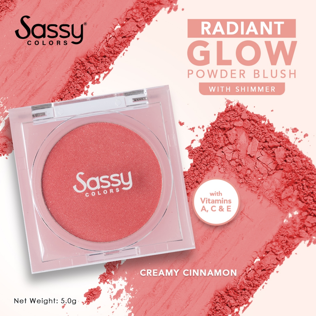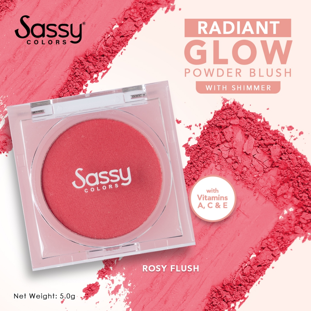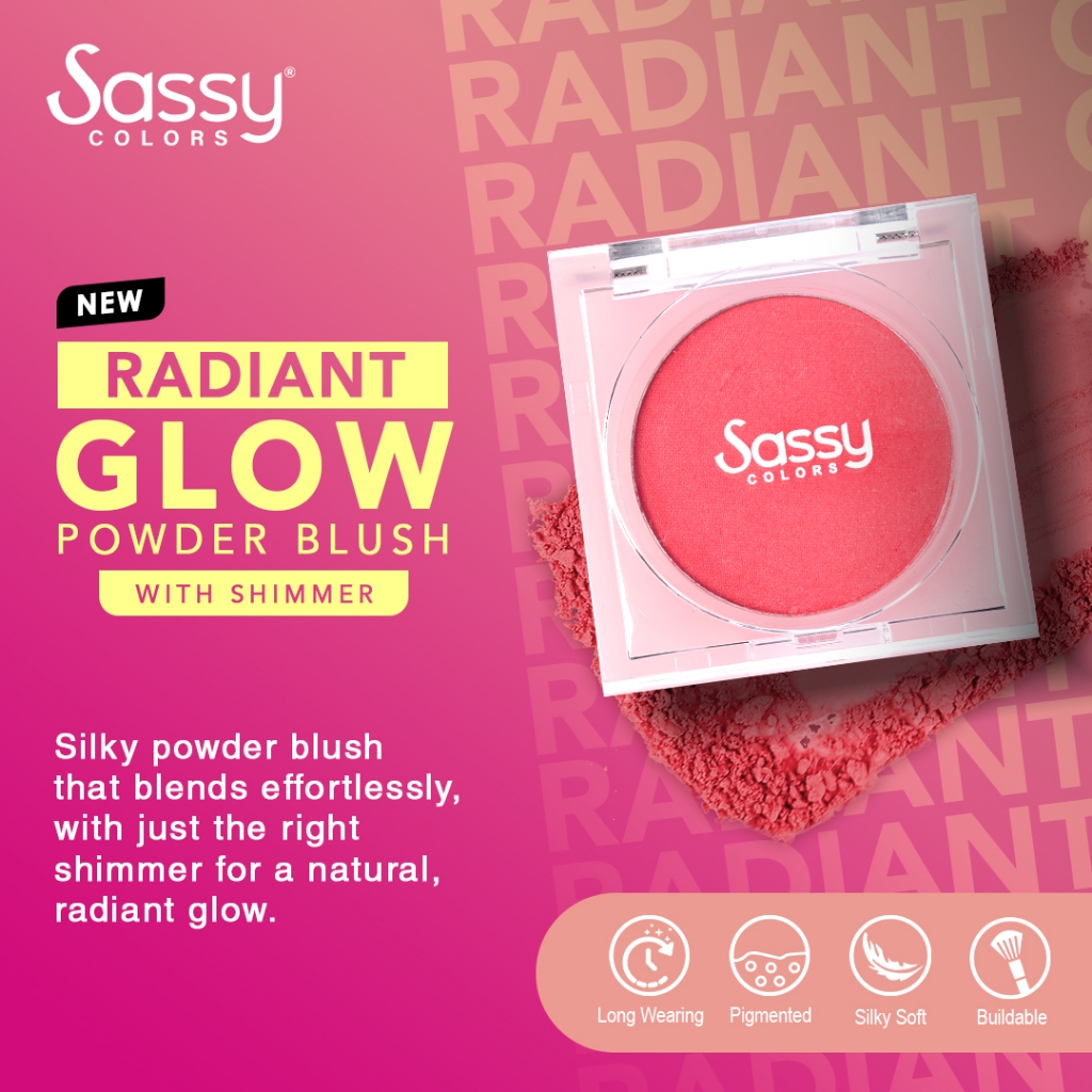 Sassy Colors Radiant Glow Powder Blush Shimmer Buildable Pigmented Infused with Vitamin A,C & E