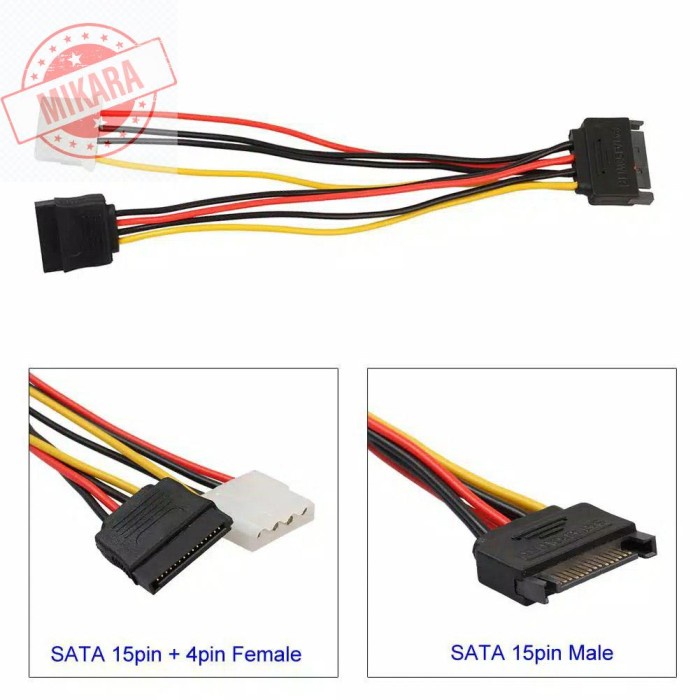SATA 15 Pin Male to 4Pin IDE Molex Female Splitter Cable + SATA Female