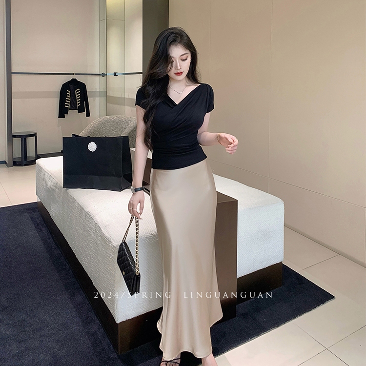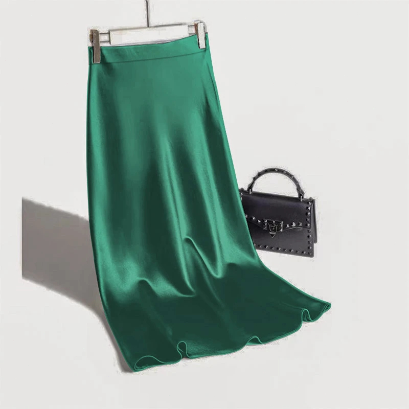 Satin Skirt Fashion Casual Palda Mermaid Wrap Long Skirt for Woman High Waist Maxi Skirt Fishtail Skirt Silk Skirt No Slit