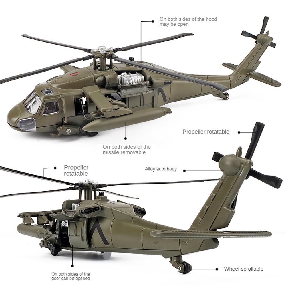 Scale 1/64 Apache gunship AH-64D / Black Hawks UH-60 Helicopter Gunships Alloy Diecast Model ToyMilitary Aircraft Flying Airplane For Children Boys