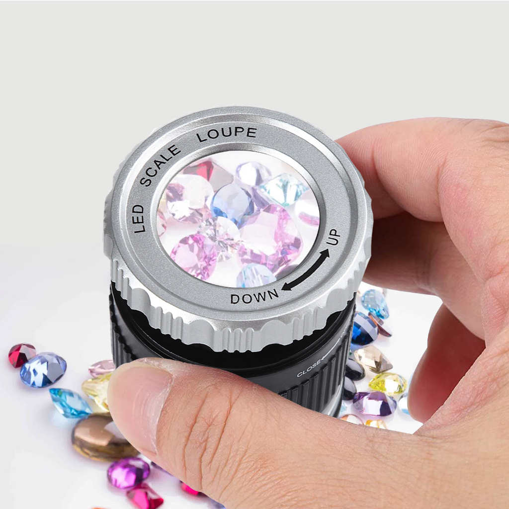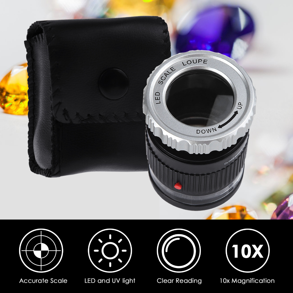 Scale Loupe Magnifier 10x Magnification LED and UV Illumination Magnifying Glass for Jeweler, Gemstone, Coins and Stamp Collector, Watch Repair