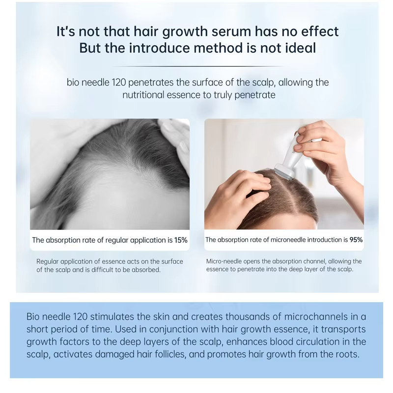 Scalp Beard Derma Stamp 120 Bio Needles Microneedling Adjustable Needle Size for Hair Growth Microneedle Face Skin