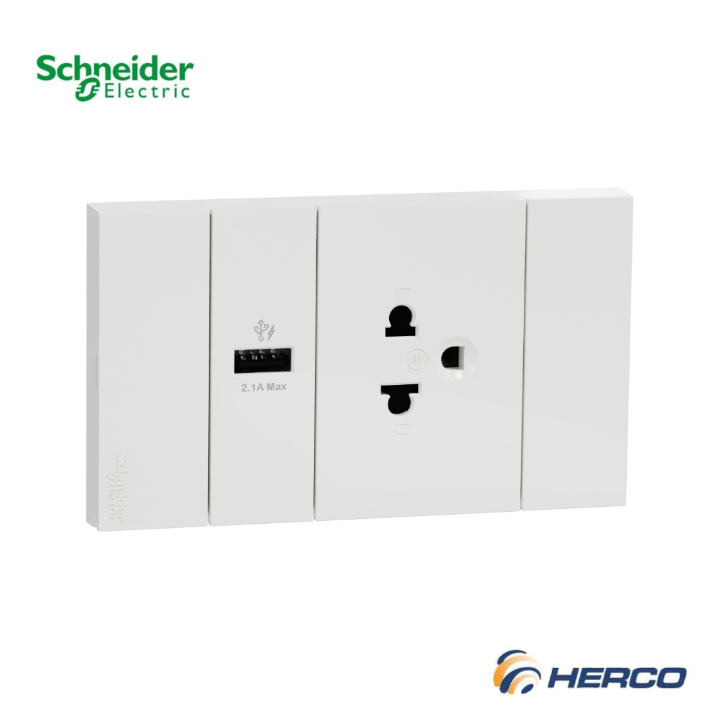 Schneider AvatarOn A 16A 250V 3 Pin USB Charger Universal Socket White (A70426USB-UST-WE)