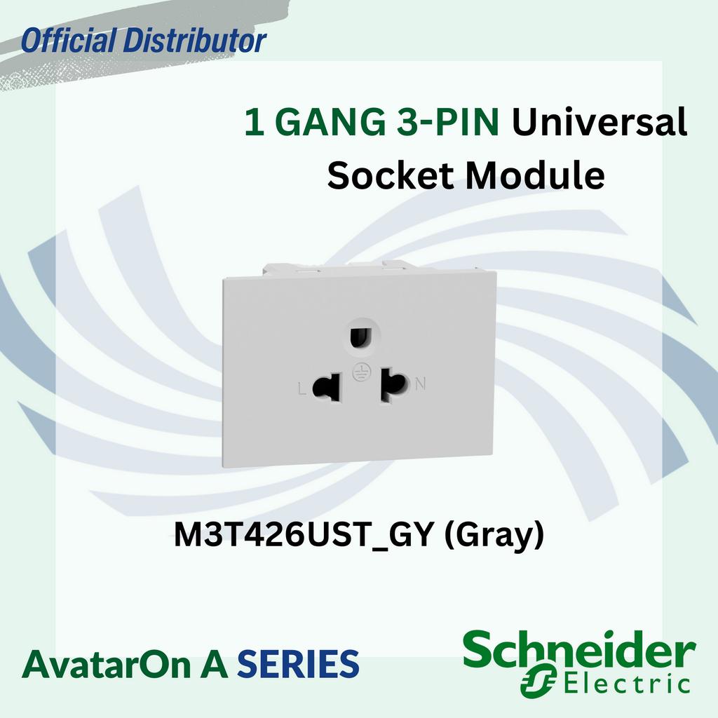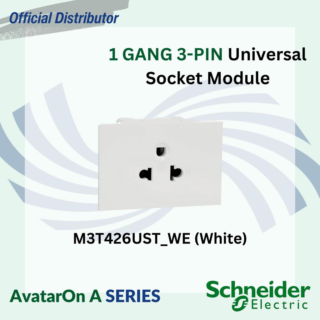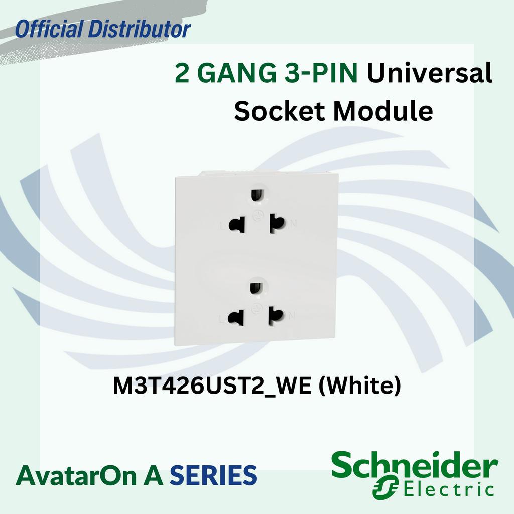 Schneider AvatarOn A 2"x4" 16A 250V 1 or 2 Gang 3-Pin Universal Socket Outlet (MODULE ONLY)