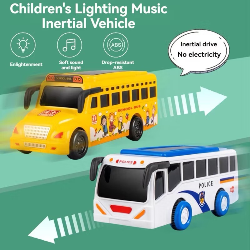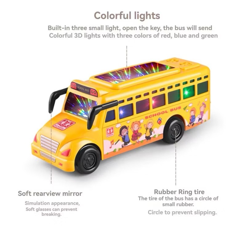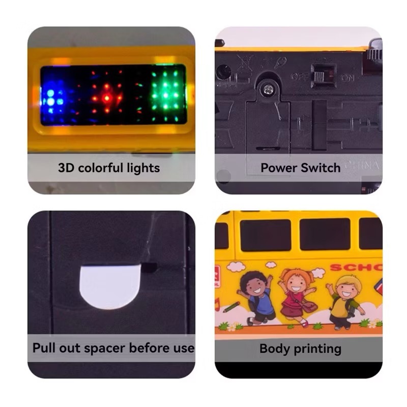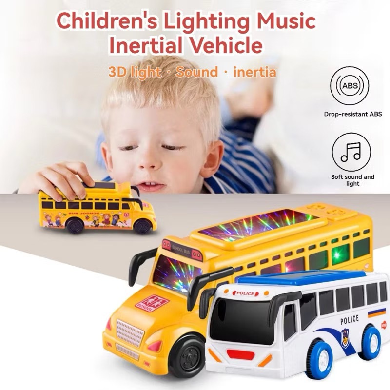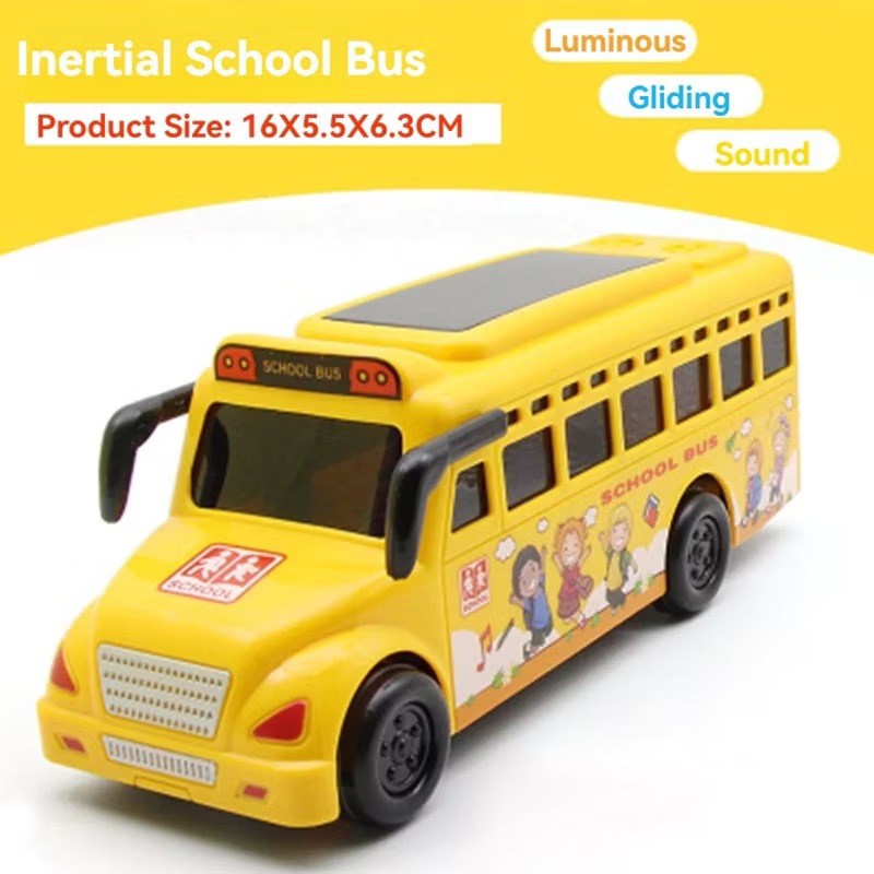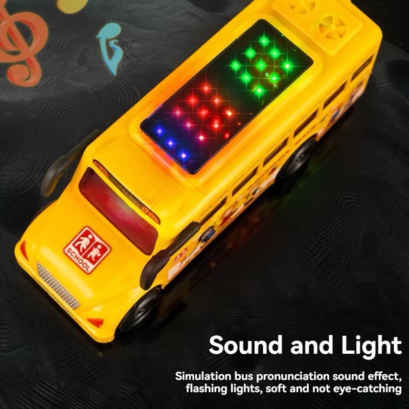 School Bus Toy for Kids with 3D LED Lights Music & Inertia Drive Yellow Plastic Interactive Play Toy