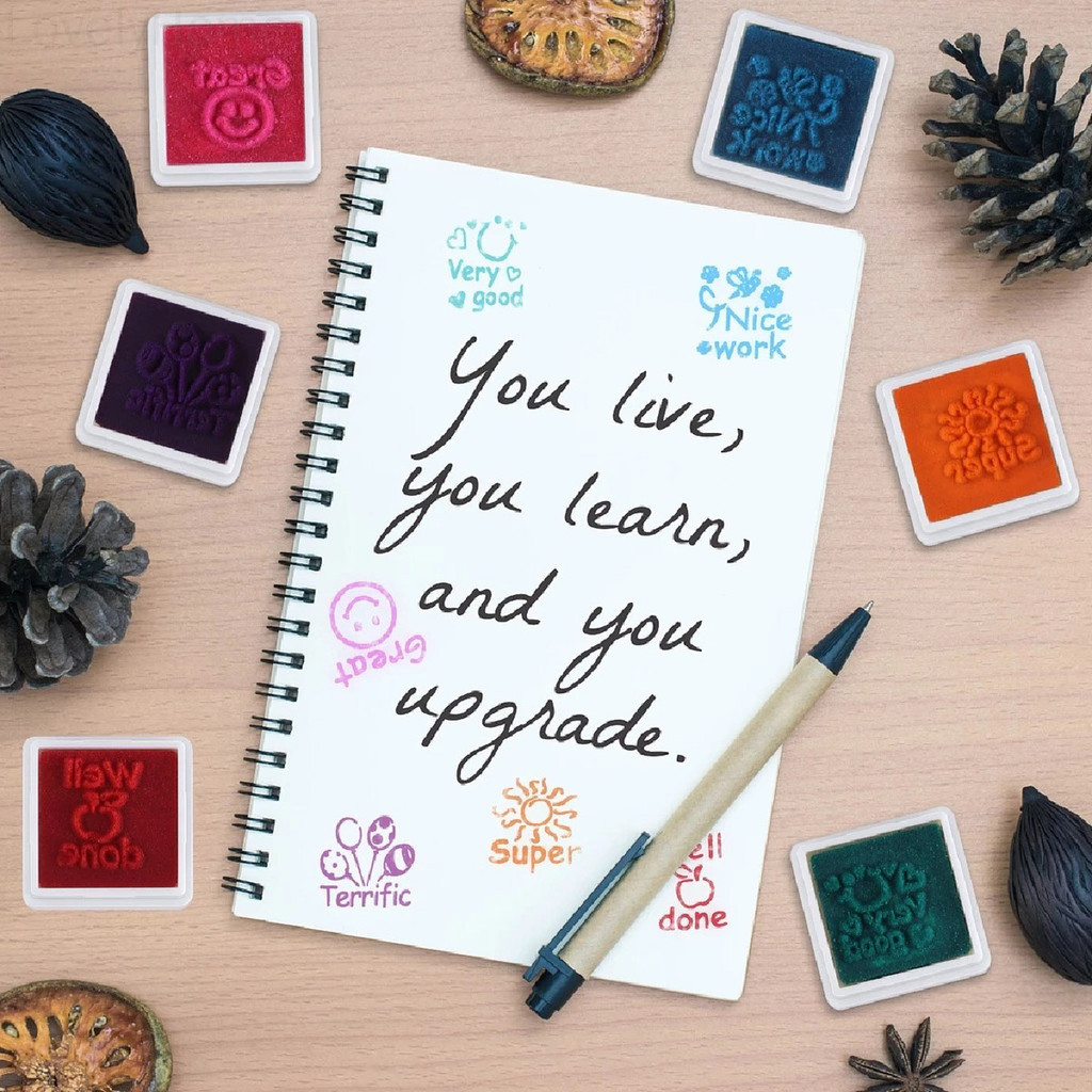 School Stamp 4/6/8pcs Automatic Inking Colorful Sets Encourage Student Stamp Suitable for School