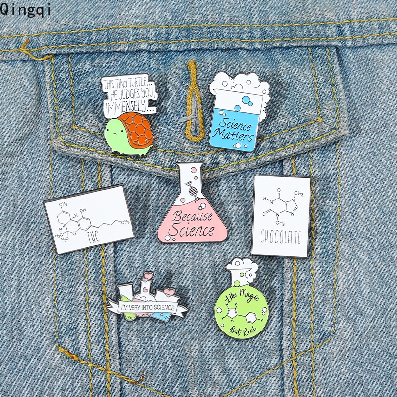 Science Enamel Pin Chemistry Molecular Beaker Brooch Badges Cartoon Test Tube Bottle Badge Pin Jewelry Gift for Kids Science Lover
