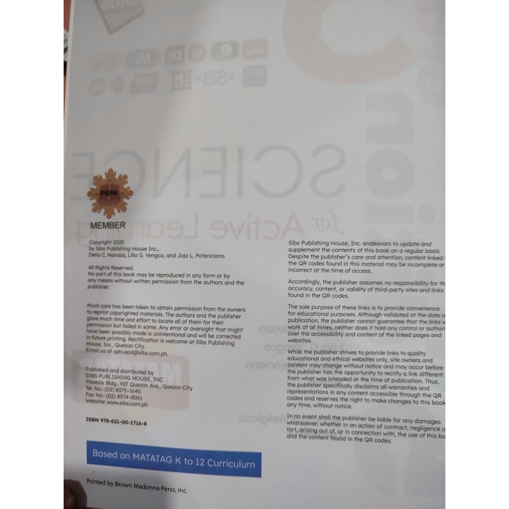 Science for Active Learning 5th Edition Grade 5 Matatag by Sibs