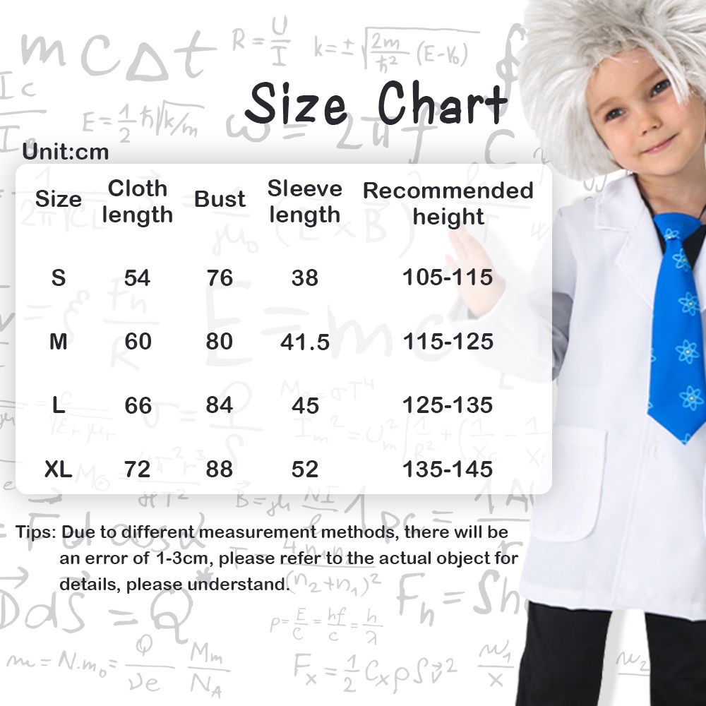 Scientist Career Costume for Kids Boys White Coat Lab Gown for Student Physicist Outfit with Wig Tie