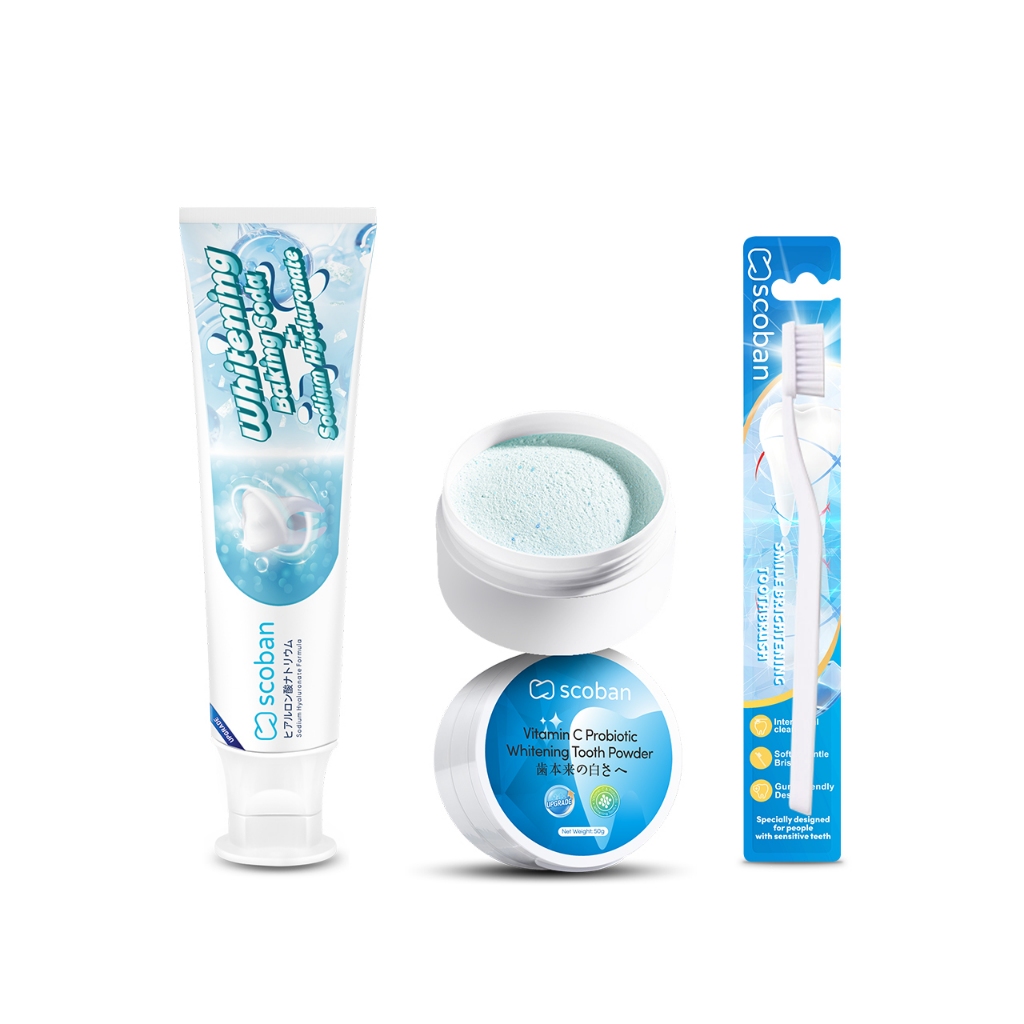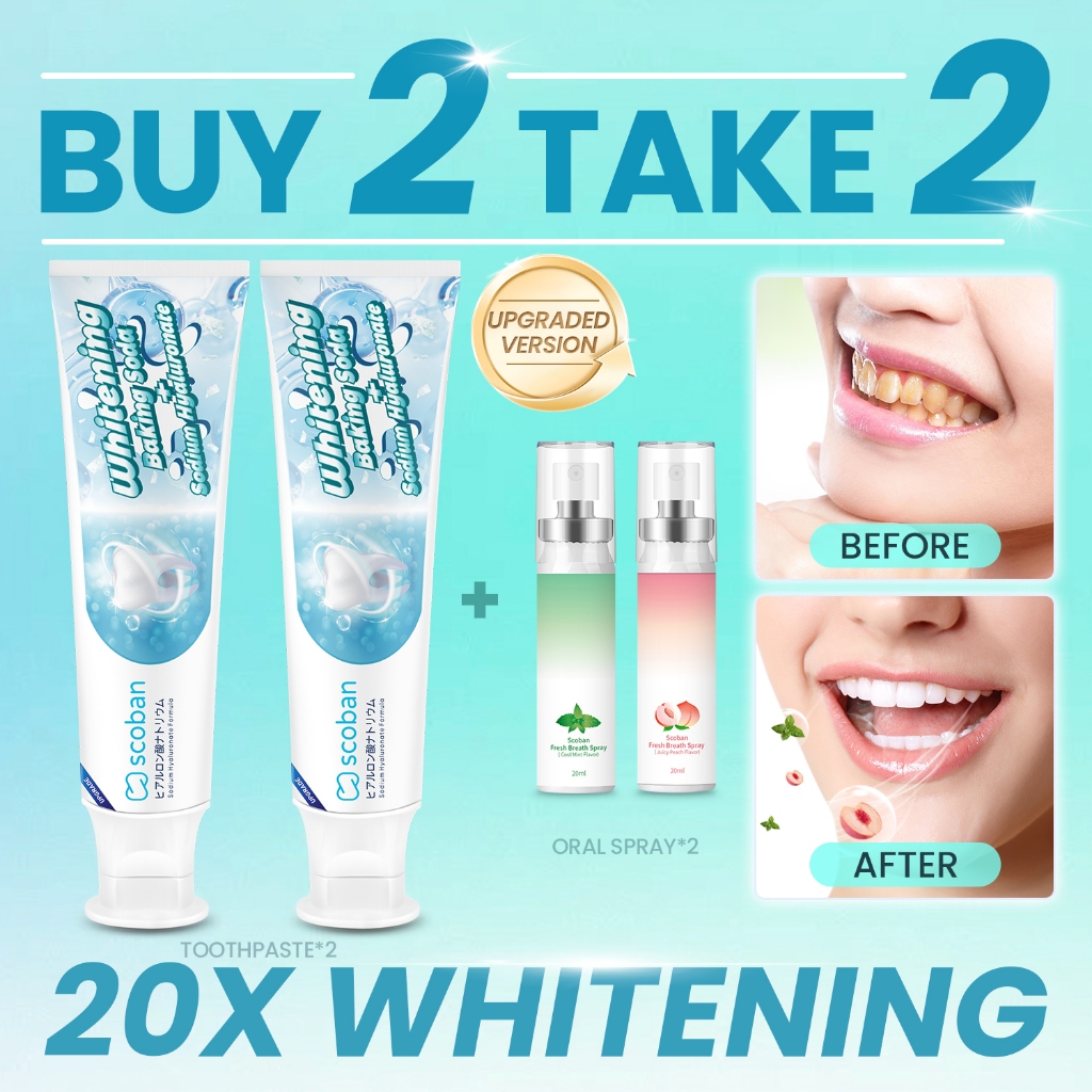 Scoban teeth Whitening toothpaste Hyaluronic Acid Dual-Effect and Scoban mouth spray Fresh Breath