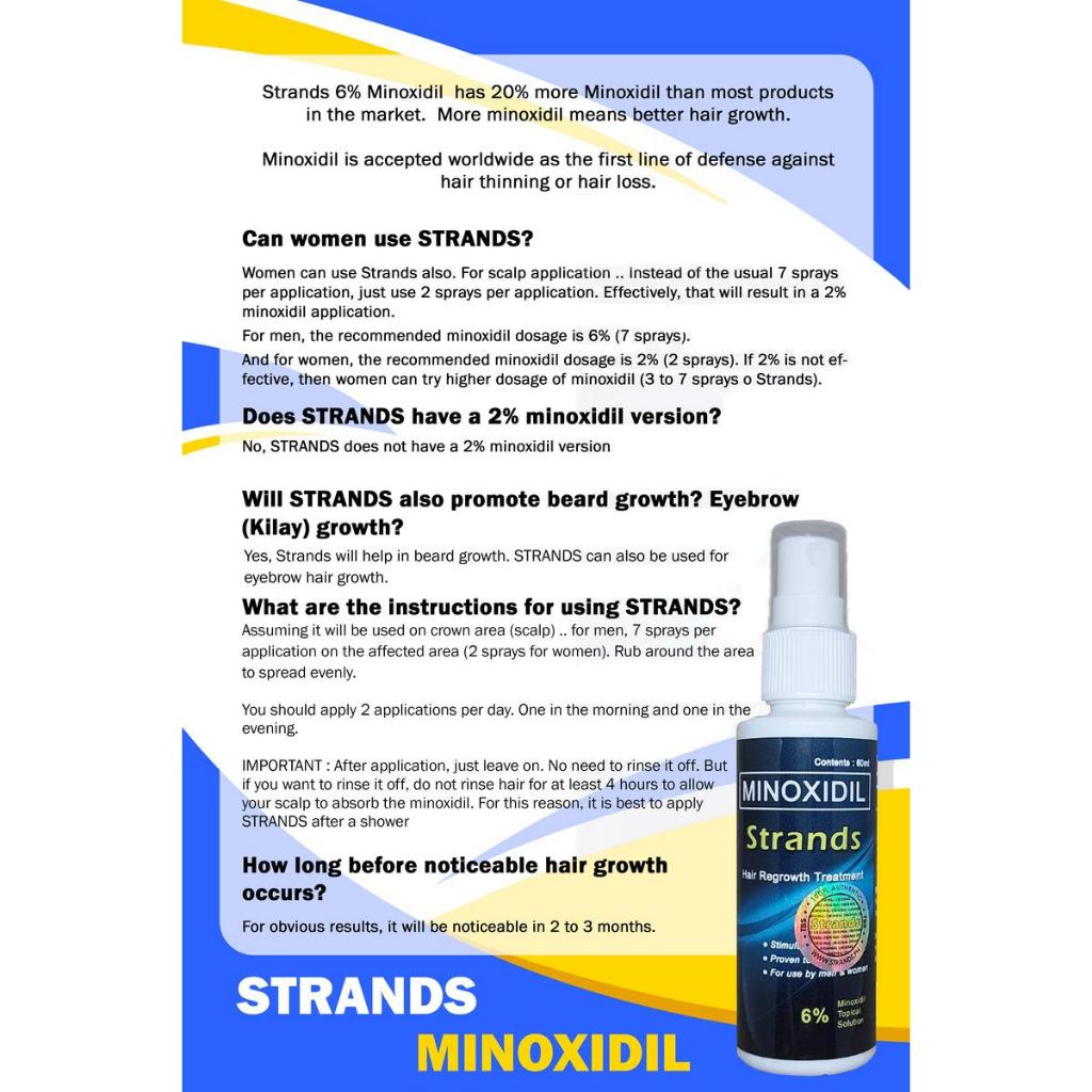 Minoxidil Strands (3 bottles) 6% Minoxidil Topical Solution (60ml per bottle) Hair Grower beard Grow